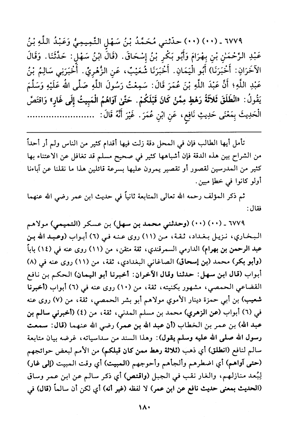 تأمل أيها الطالب فإن في المحل دقة زلت فيها أقدام كثير من النَّاس ولم أر أحدًا من الشراح بين هذه الدقة فإن أشباهها كثير في صحيح مسلم قد تغافل عن الاعتناء بها كثير من المدرسين لقصور أو تقصير يمرون عليها بسرعة قائلين هذا ما نقلنا عن آباءنا أولو كانوا في خطإ مبين.