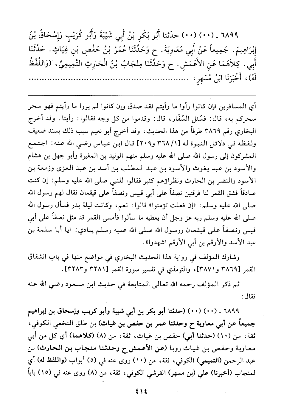 وشارك المؤلف في رواية هذا الحديث البخاري في مواضع منها في باب انشقاق القمر [٣٨٦٩١ و ٣٨٧١]، والترمذي في تفسير سورة القمر [٣٢٨١ و ٣٢٨٣].