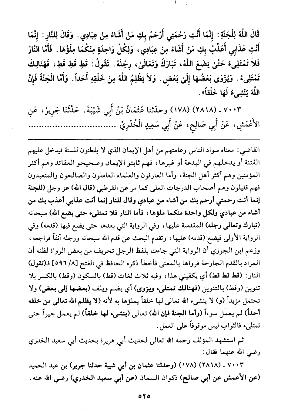 ٧٠٠٣ - (٢٨١٨) (١٧٨) (وحدثنا عثمان بن أبي شيبة حدَّثنا جرير) بن عبد الحميد (عن الأعمش عن أبي صالح) ذكوان السمان (عن أبي سعيد الخدري) رضي الله عنه.