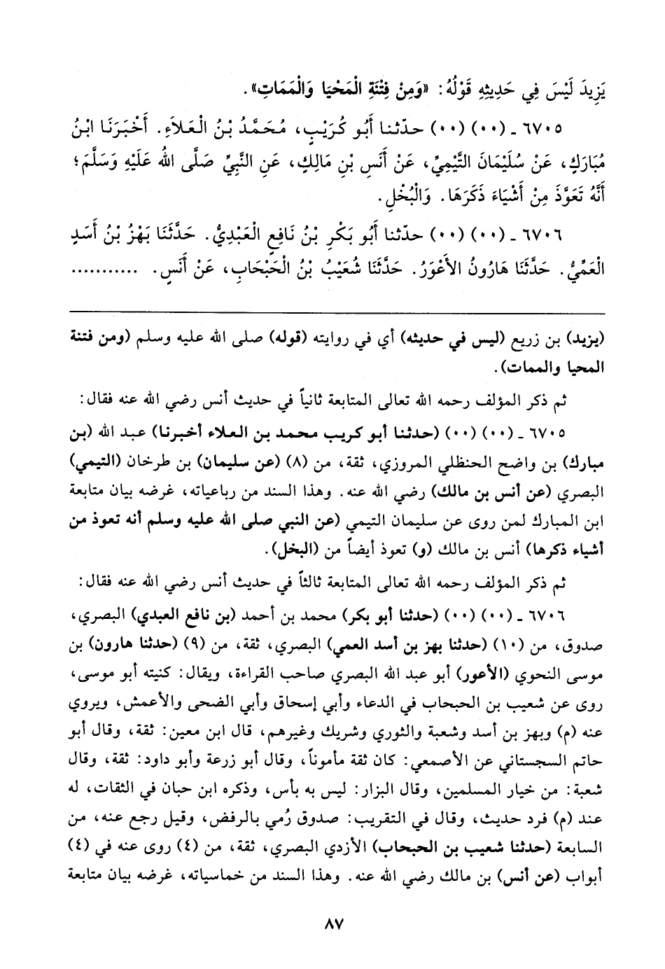 ٦٧٠٥ - (٠٠) (٠٠) حدّثنا أَبُو كُرَيْبٍ، مُحَمَّدُ بْنُ الْعَلَاءِ. أَخْبَرَنَا ابْنُ مُبَارَكٍ، عَنْ سُلَيْمَانَ التَّيْمِيِّ، عَنْ أَنَسِ بْنِ مَالِكِ، عَنِ النَّبِى صَلَّى اللهُ عَلَيهِ وَسَلَّمَ؛ أَنَّهُ تَعَوَّذَ مِنْ أَشْيَاءَ ذَكَرَهَا. وَالْبُخْلِ.
