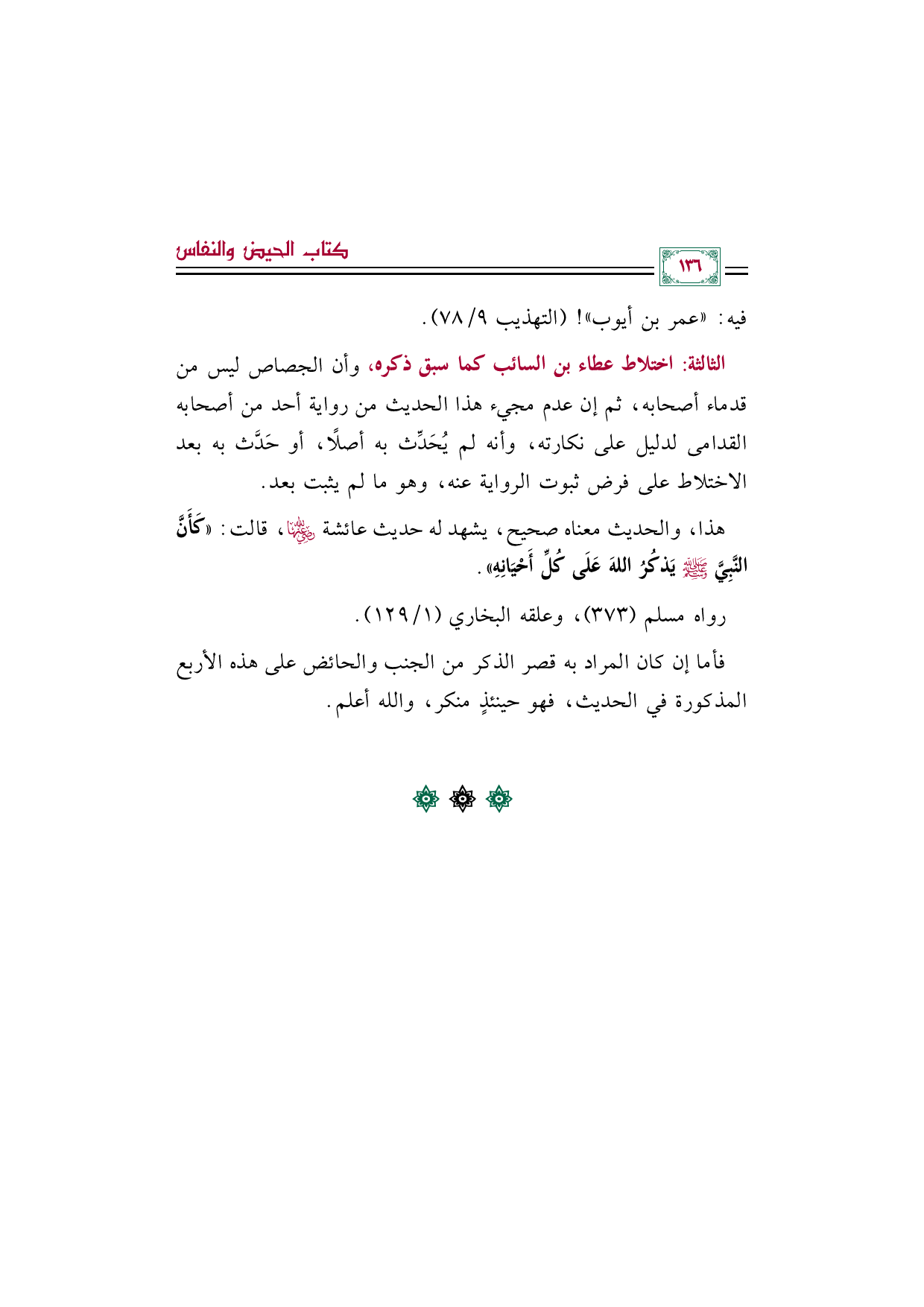 فأما إن كان المراد به قصر الذكر من الجنب والحائض على هذه الأربع المذكورة في الحديث، فهو حينئذٍ منكر، والله أعلم.