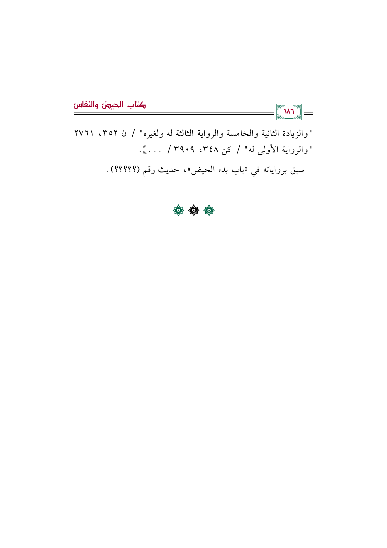 سبق برواياته في "باب بدء الحيض"، حديث رقم (؟ ؟ ؟ ؟ ؟ ).