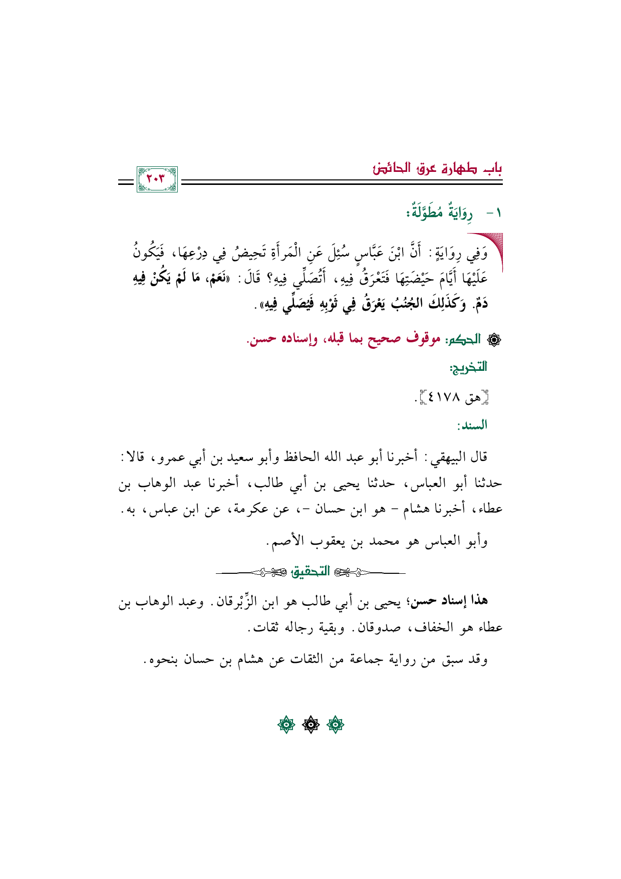 قال البيهقي: أخبرنا أبو عبد الله الحافظ وأبو سعيد بن أبي عمرو، قالا: حدثنا أبو العباس، حدثنا يحيى بن أبي طالب، أخبرنا عبد الوهاب بن عطاء، أخبرنا هشام -هو ابن حسان-، عن عكرمة، عن ابن عباس، به.