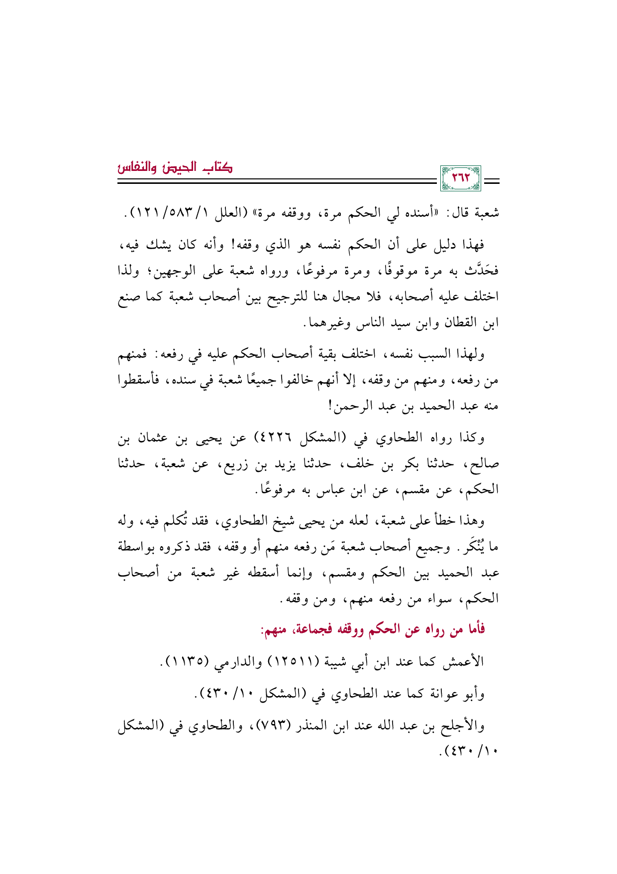 فهذا دليل على أن الحكم نفسه هو الذي وقفه! وأنه كان يشك فيه، فحَدَّث به مرة موقوفًا، ومرة مرفوعًا، ورواه شعبة على الوجهين؛ ولذا اختلف عليه أصحابه، فلا مجال هنا للترجيح بين أصحاب شعبة كما صنع ابن القطان وابن سيد الناس وغيرهما.
