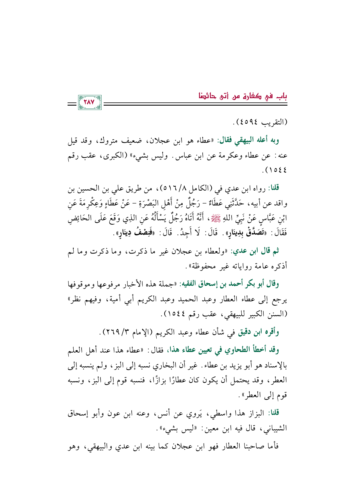 وأقره ابن دقيق في شأن عطاء وعبد الكريم (الإمام ٣/ ٢٦٩).