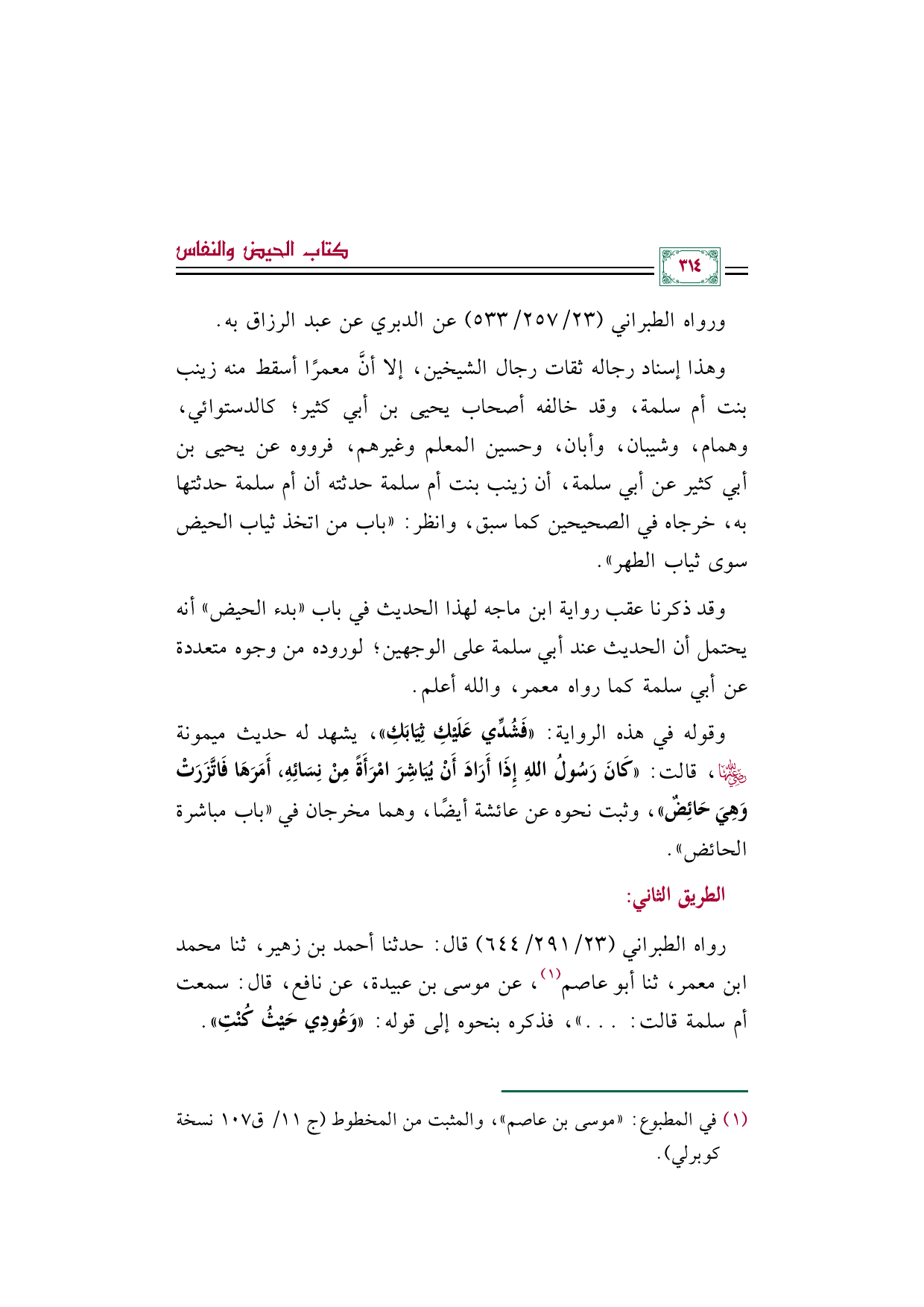 (¬١) - في المطبوع: ((موسى بن عاصم))، والمثبت من المخطوط (ج ١١/ ق ١٠٧ نسخة كوبرلي).