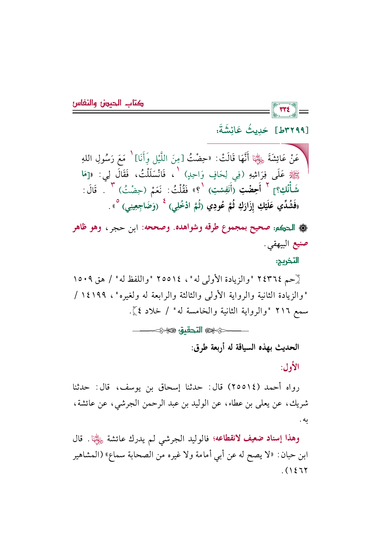 رواه أحمد (٢٥٥١٤) قال: حدثنا إسحاق بن يوسف، قال: حدثنا شريك، عن يعلى بن عطاء، عن الوليد بن عبد الرحمن الجرشي، عن عائشة، به.