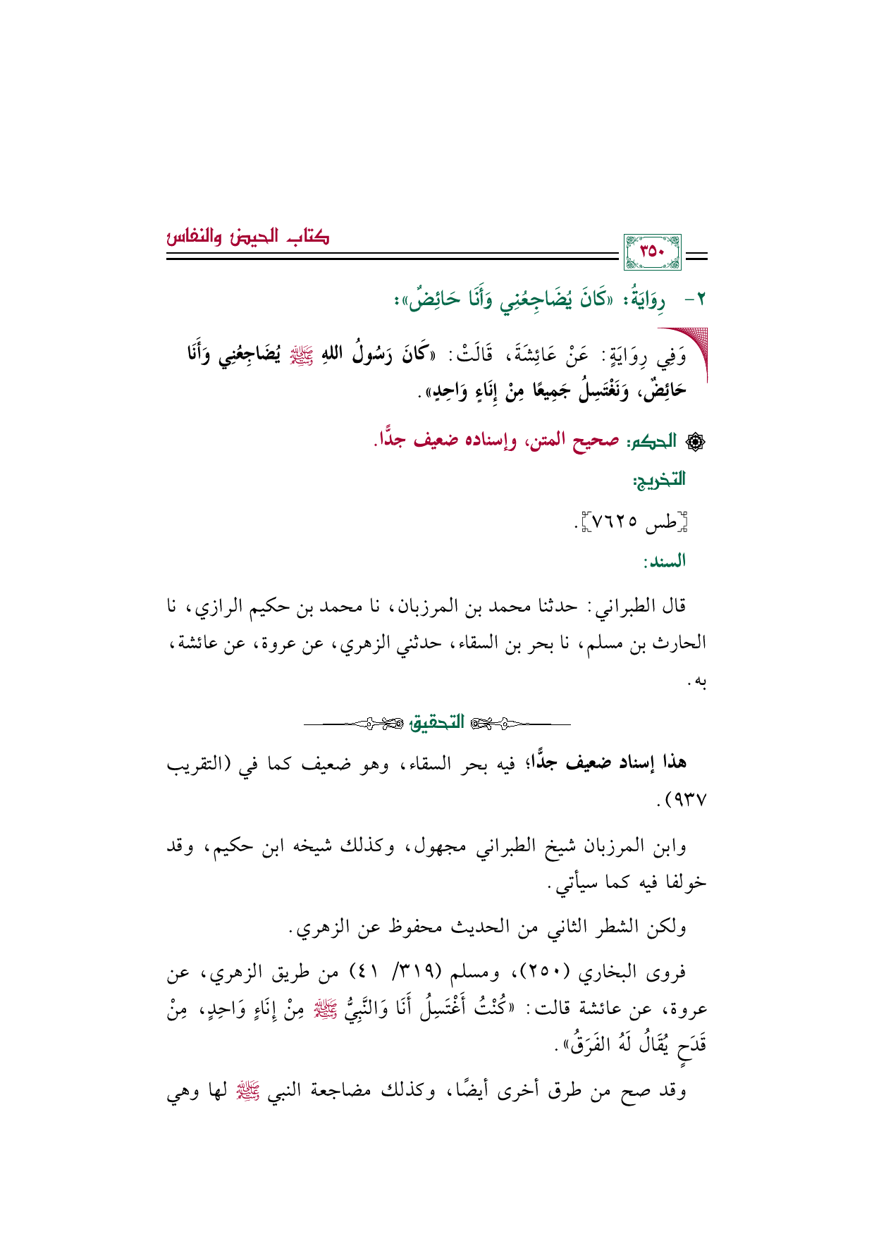 قال الطبراني: حدثنا محمد بن المرزبان، نا محمد بن حكيم الرازي، نا الحارث بن مسلم، نا بحر بن السقاء، حدثني الزهري، عن عروة، عن عائشة، به.