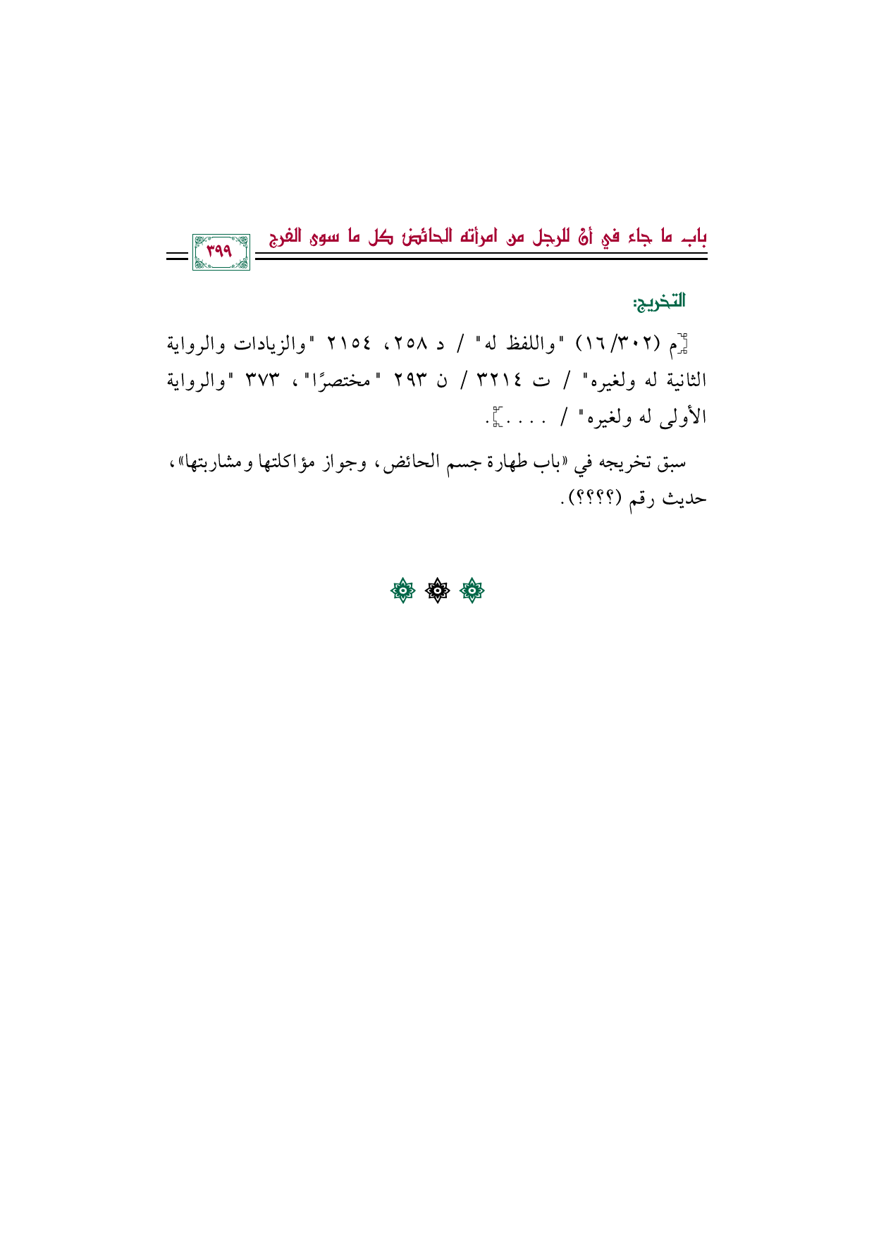 سبق تخريجه في (باب طهارة جسم الحائض، وجواز مؤاكلتها ومشاربتها)، حديث رقم (؟ ؟ ؟ ؟ ).