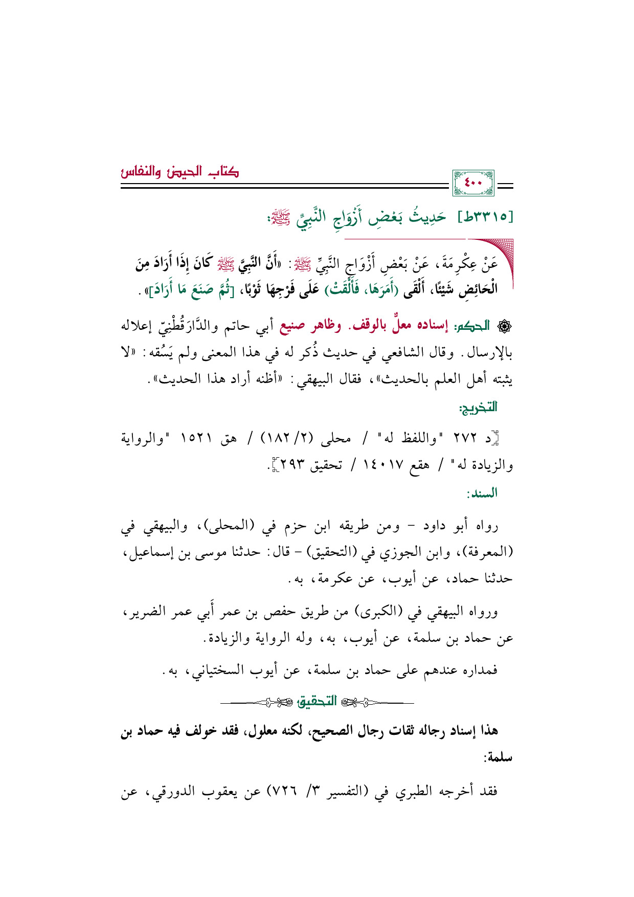 رواه أبو داود -ومن طريقه ابن حزم في (المحلى)، والبيهقي في (المعرفة)، وابن الجوزي في (التحقيق) - قال: حدثنا موسى بن إسماعيل، حدثنا حماد، عن أيوب، عن عكرمة، به.