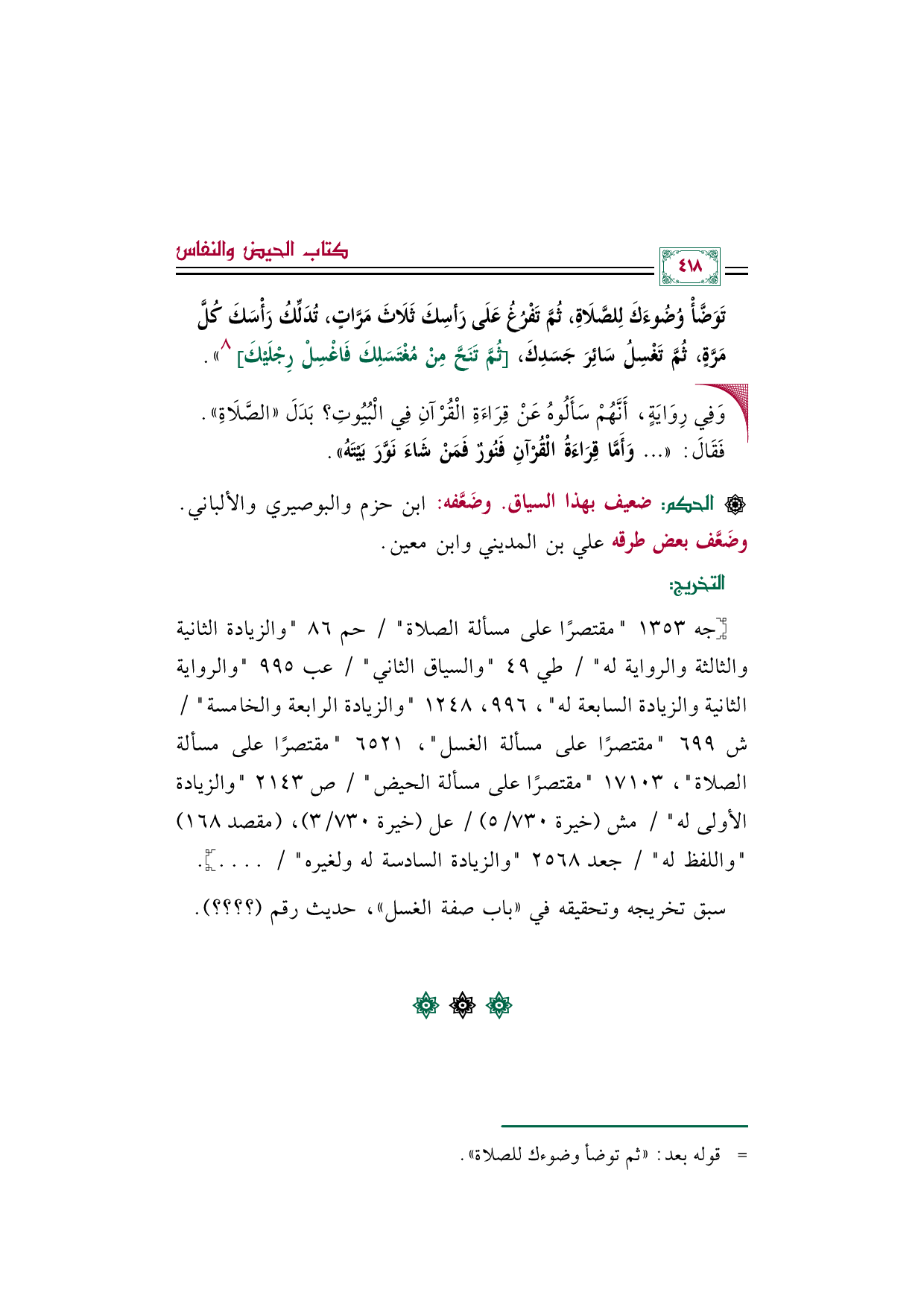 سبق تخريجه وتحقيقه في (باب صفة الغسل)، حديث رقم (؟؟؟؟).