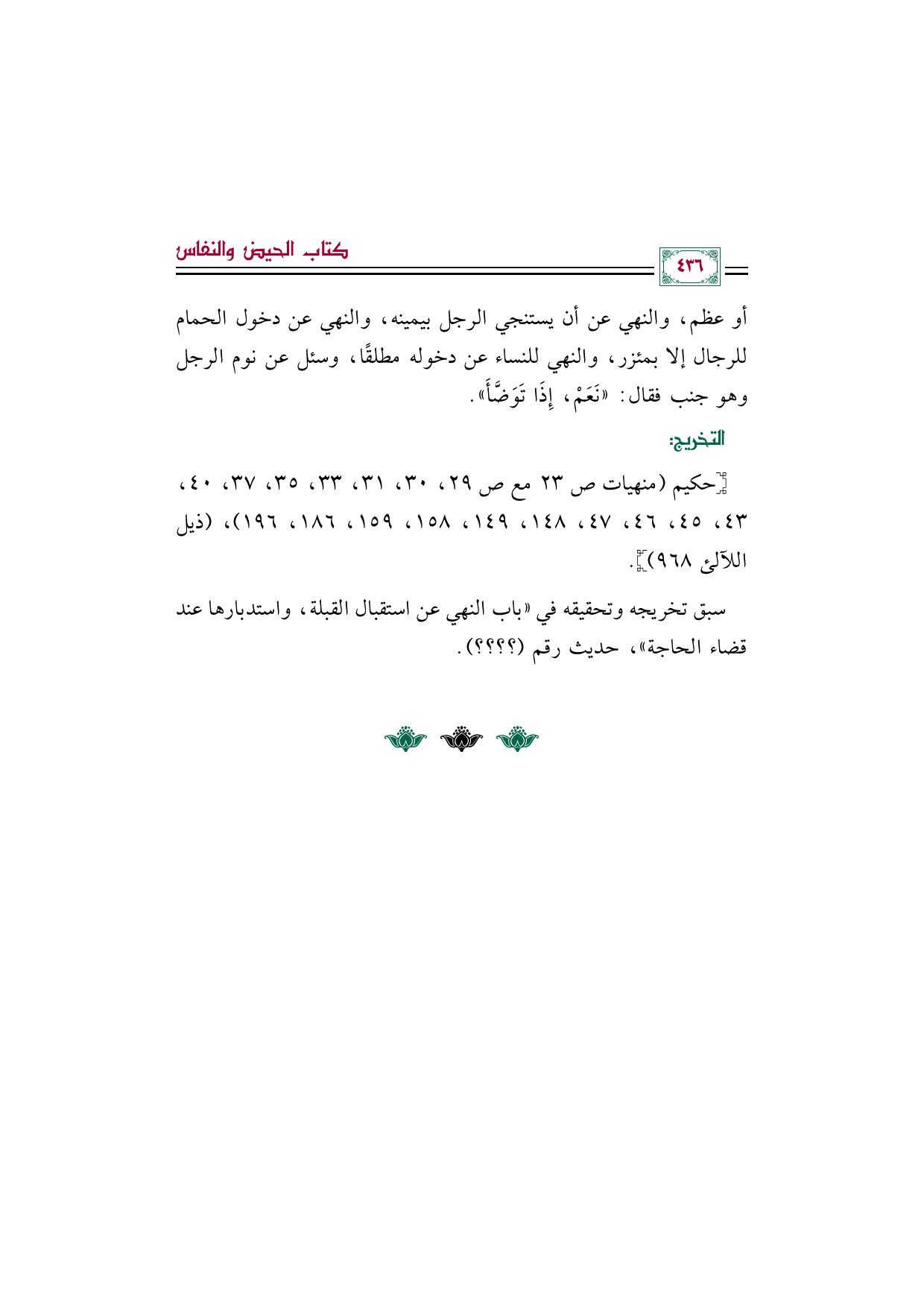 سبق تخريجه وتحقيقه في (باب النهي عن استقبال القبلة، واستدبارها عند قضاء الحاجة)، حديث رقم (؟ ؟ ؟ ؟ ).