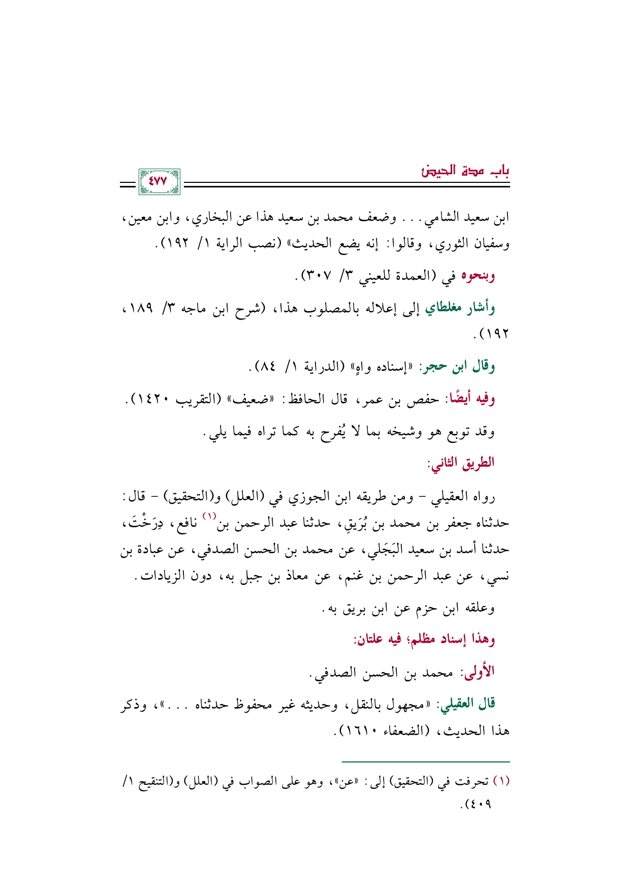 (¬١) - تحرفت في (التحقيق) إلى: ((عن))، وهو على الصواب في (العلل) و (التنقيح ١/ ٤٠٩).