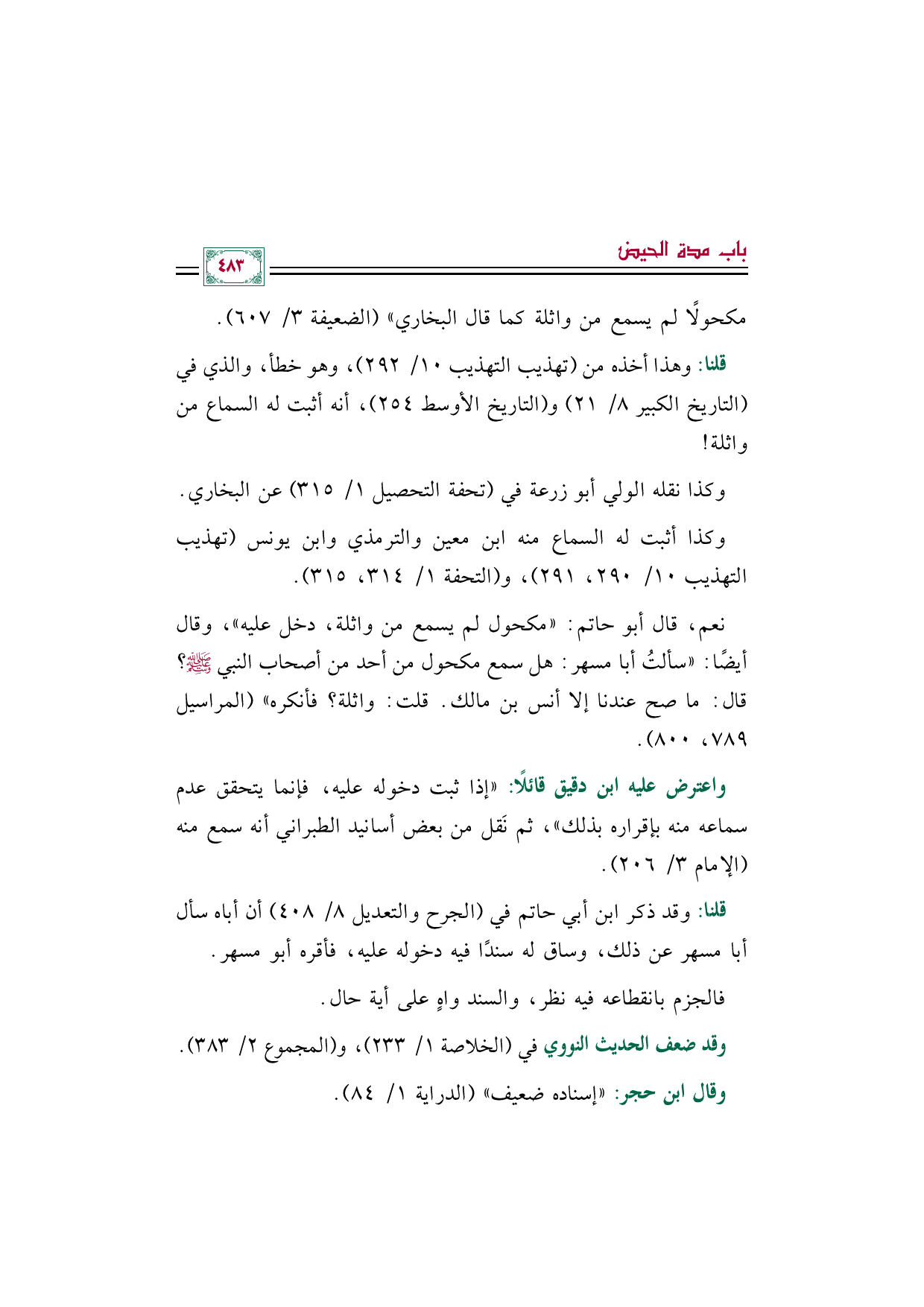 قلنا: وهذا أخذه من (تهذيب التهذيب ١٠/ ٢٩٢)، وهو خطأ، والذي في (التاريخ الكبير ٨/ ٢١) و (التاريخ الأوسط ٢٥٤)، أنه أثبت له السماع من واثلة!