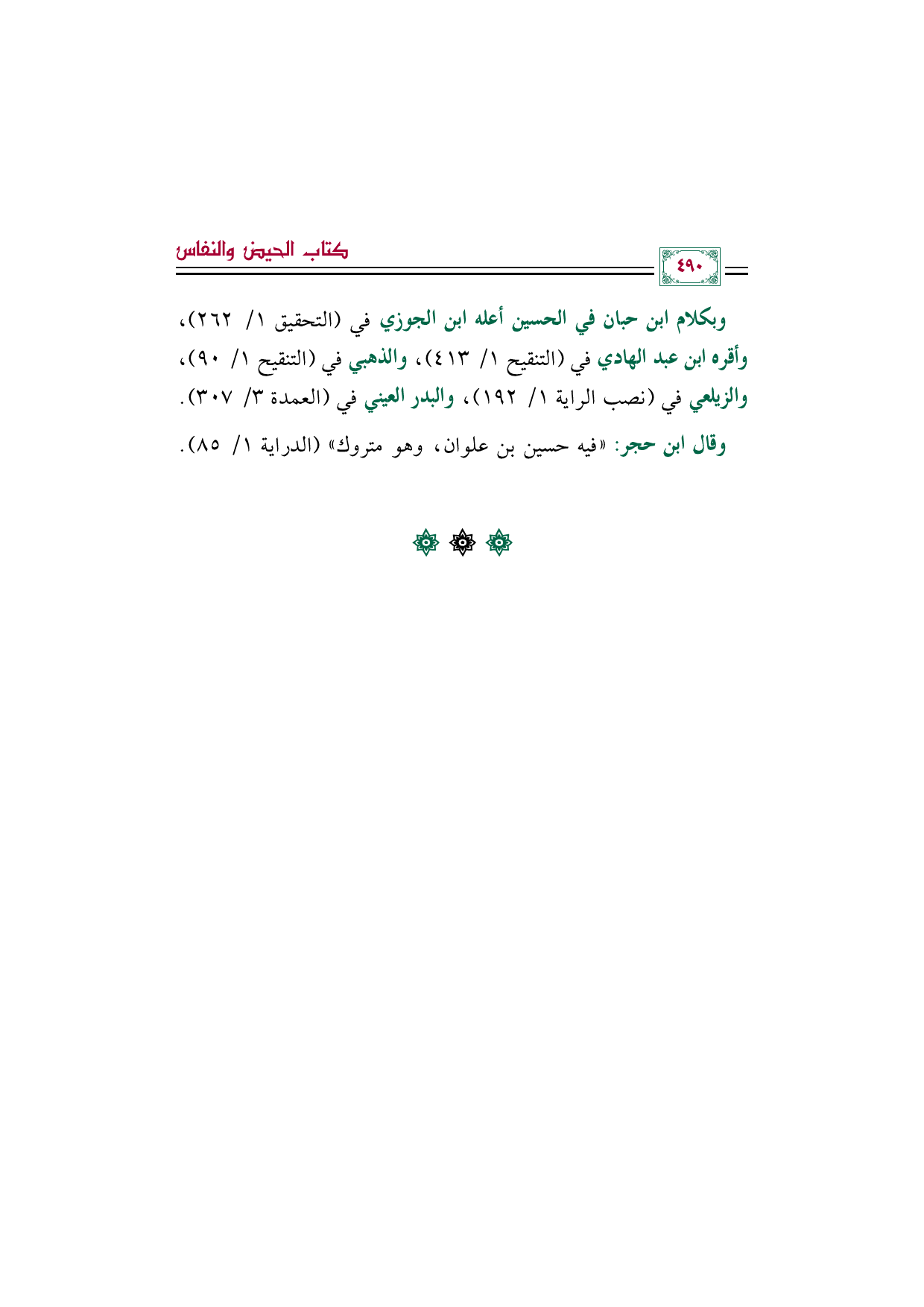 وبكلام ابن حبان في الحسين أعله ابن الجوزي في (التحقيق ١/ ٢٦٢)، وأقره ابن عبد الهادي في (التنقيح ١/ ٤١٣)، والذهبي في (التنقيح ١/ ٩٠)، والزيلعي في (نصب الراية ١/ ١٩٢)، والبدر العيني في (العمدة ٣/ ٣٠٧).