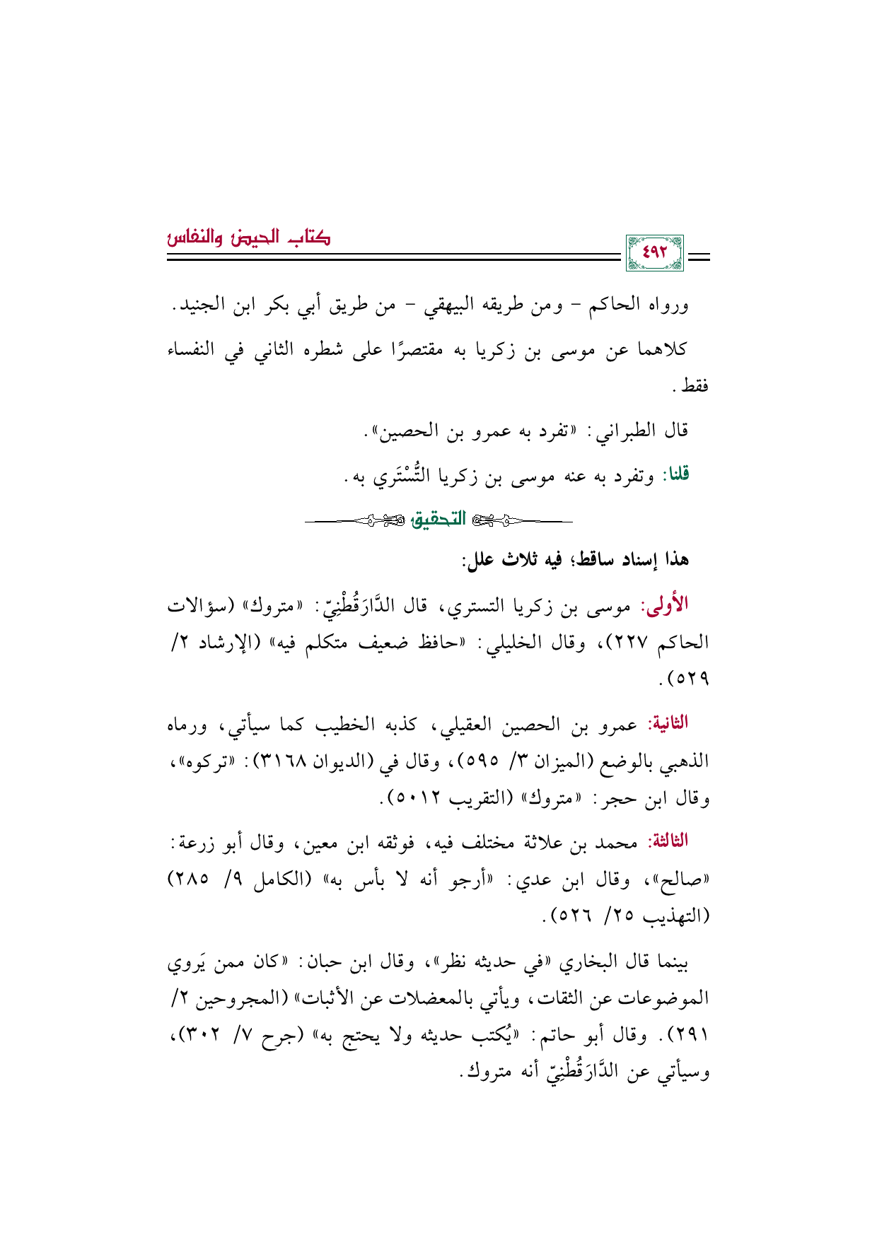 كلاهما عن موسى بن زكريا به مقتصرًا على شطره الثاني في النفساء فقط.