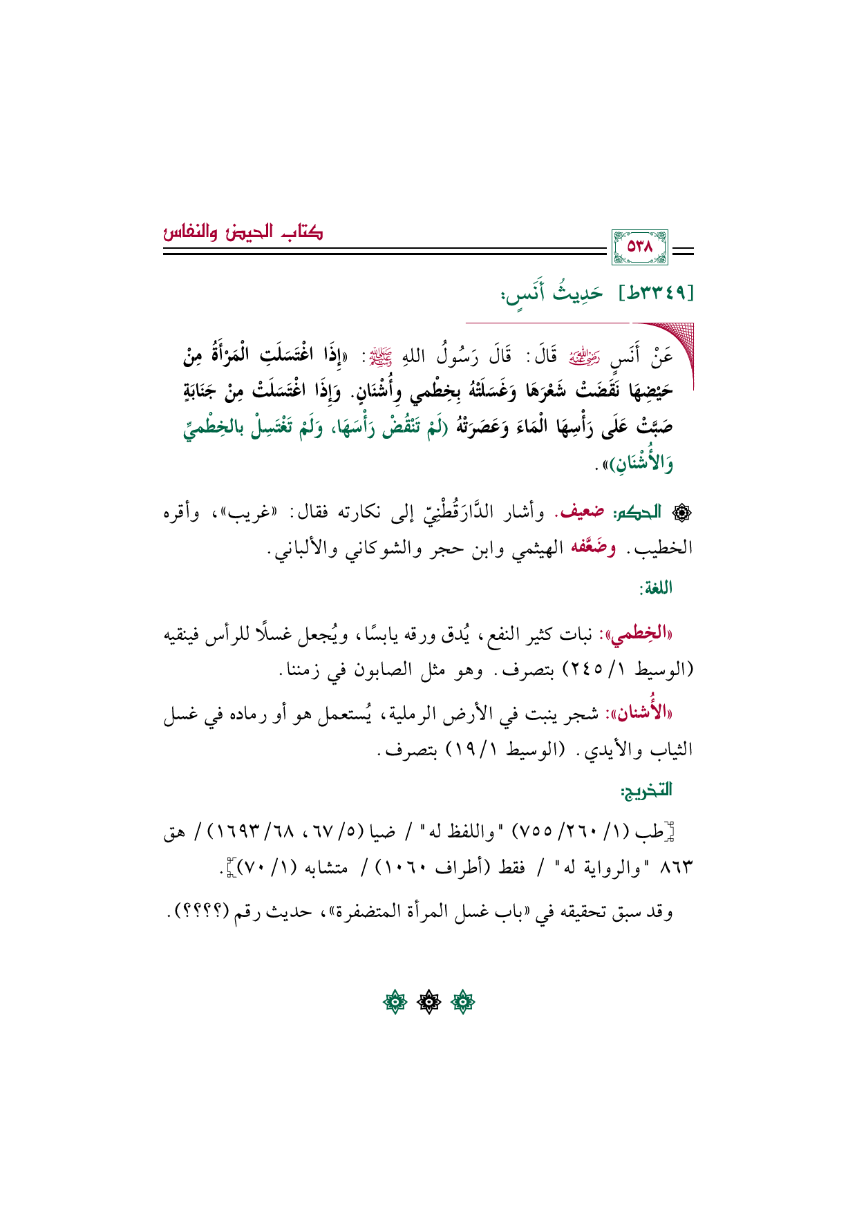 وقد سبق تحقيقه في (باب غسل المرأة المتضفرة)، حديث رقم (؟ ؟ ؟ ؟ ).