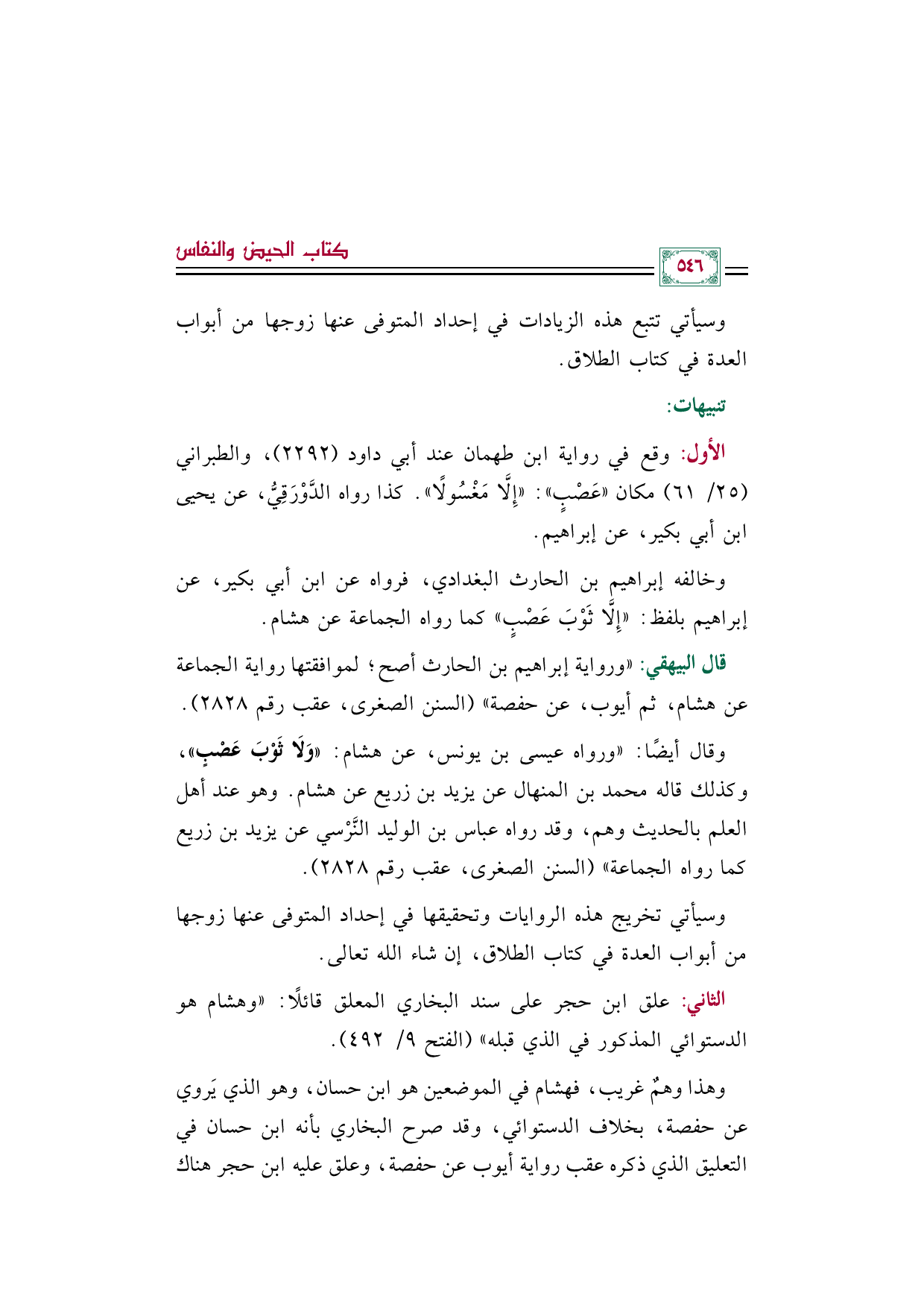 وسيأتي تتبع هذه الزيادات في إحداد المتوفى عنها زوجها من أبواب العدة في كتاب الطلاق.