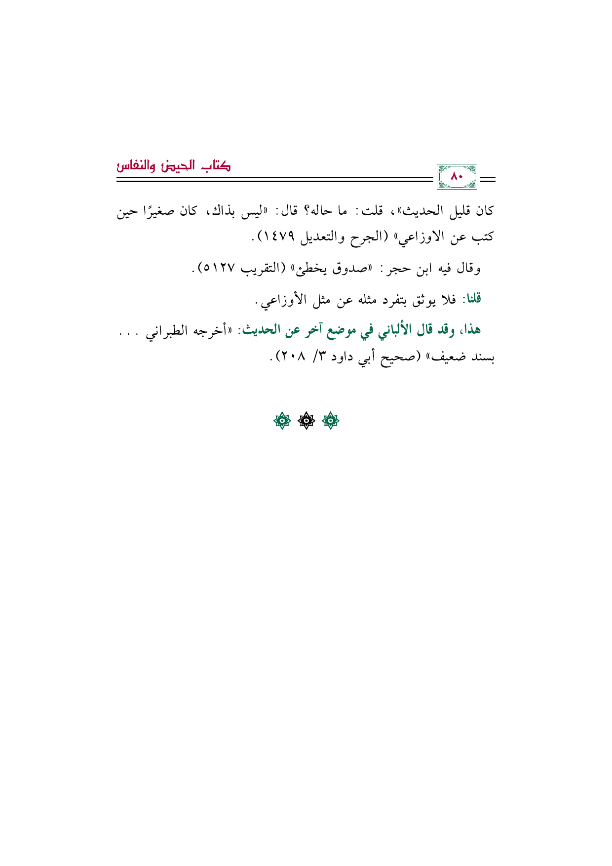 كان قليل الحديث))، قلت: ما حاله؟ قال: ((ليس بذاك، كان صغيرًا حين كتب عن الاوزاعي)) (الجرح والتعديل ١٤٧٩).