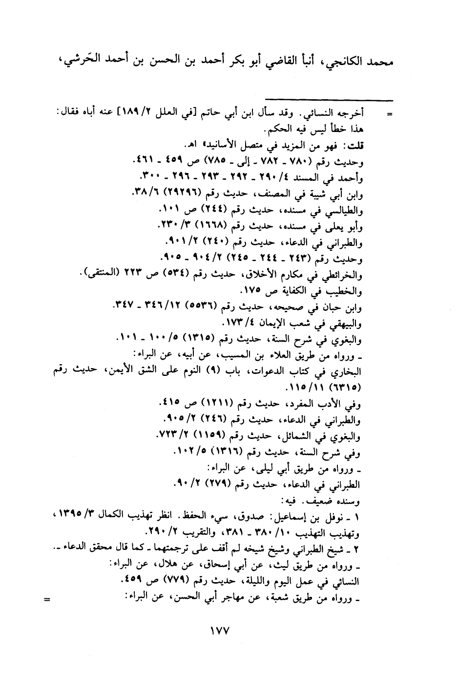 مُحَمَّد الكانجي أنبأ الْقَاضِي أَبُو بَكْرٍ أَحْمَدُ بْنُ الْحسن بن أَحْمد الْحَرَشِي