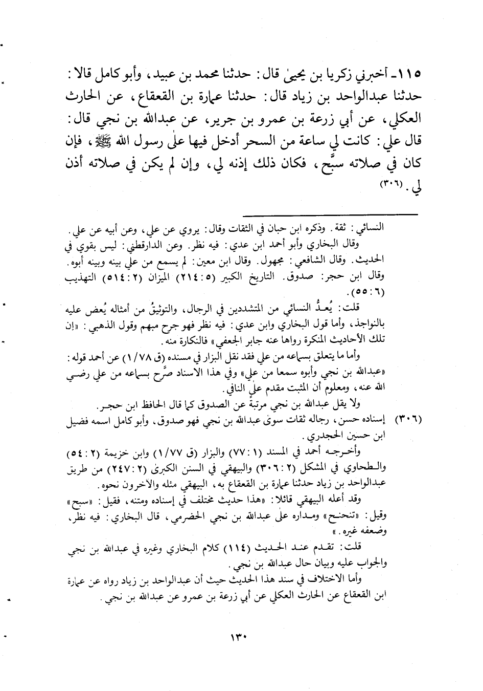 115 - أَخْبرنِي زَكَرِيَّا بن يحيى قَالَ حَدثنَا مُحَمَّد بن عبيد وَأَبُو كَامِل قَالَا حَدثنَا عبد الْوَاحِد بن زِيَاد قَالَ حَدثنَا عمَارَة بن الْقَعْقَاع عَن الْحَارِث العكلي عَن أبي زرْعَة بن عَمْرو بن جرير عَن عبد الله بن نجي قَالَ قَالَ عَليّ كَانَت لي سَاعَة من السحر ادخل فِيهَا على رَسُول الله صلى الله عَلَيْهِ وَسلم فان كَانَ فِي صلَاته سبح فَكَانَ ذَلِك أُذُنه لي وَإِن لم يكن فِي صلَاته أذن لي