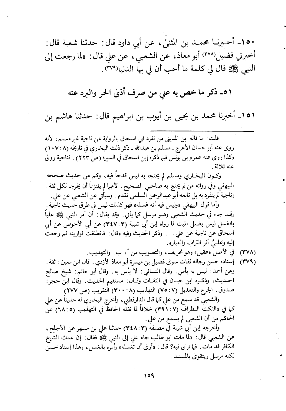 150 - أخبرنَا مُحَمَّد بن الْمثنى عَن أبي دَاوُد قَالَ حَدثنَا شُعْبَة قَالَ أَخْبرنِي فُضَيْل أَبُو معَاذ عَن الشّعبِيّ عَن عَليّ قَالَ لما رجعت إِلَى النَّبِي صلى الله عَلَيْهِ وَسلم قَالَ لي كلمة مَا أحب أَن لي بهَا الدُّنْيَا