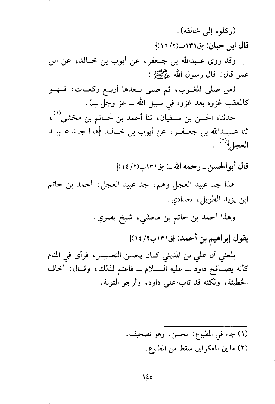 قَالَ أَبُو الْحَسَنِ، رَحمَه اللَّه: هَذَا جد عبيد الْعجل وهم، جد عبيد الْعجل: أَحْمد بْن حَاتِم بْن يزِيد الطَّوِيل، بغدادي.