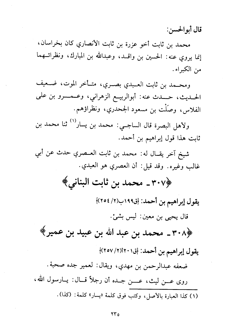 307- مُحَمَّد بْن ثَابت الْبنانِيّ