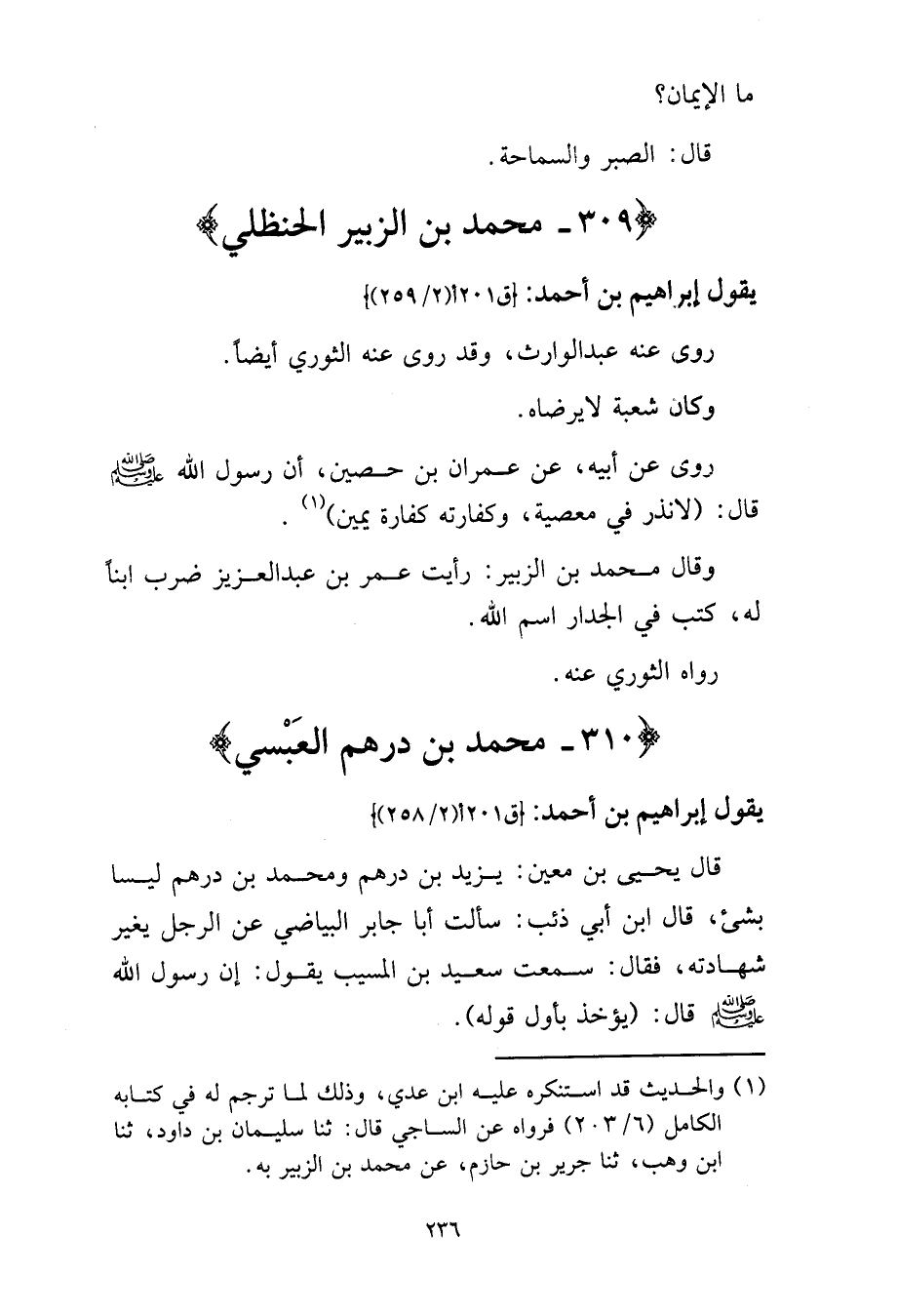 309- مُحَمَّد بْن الزبير الْحَنْظَلِي