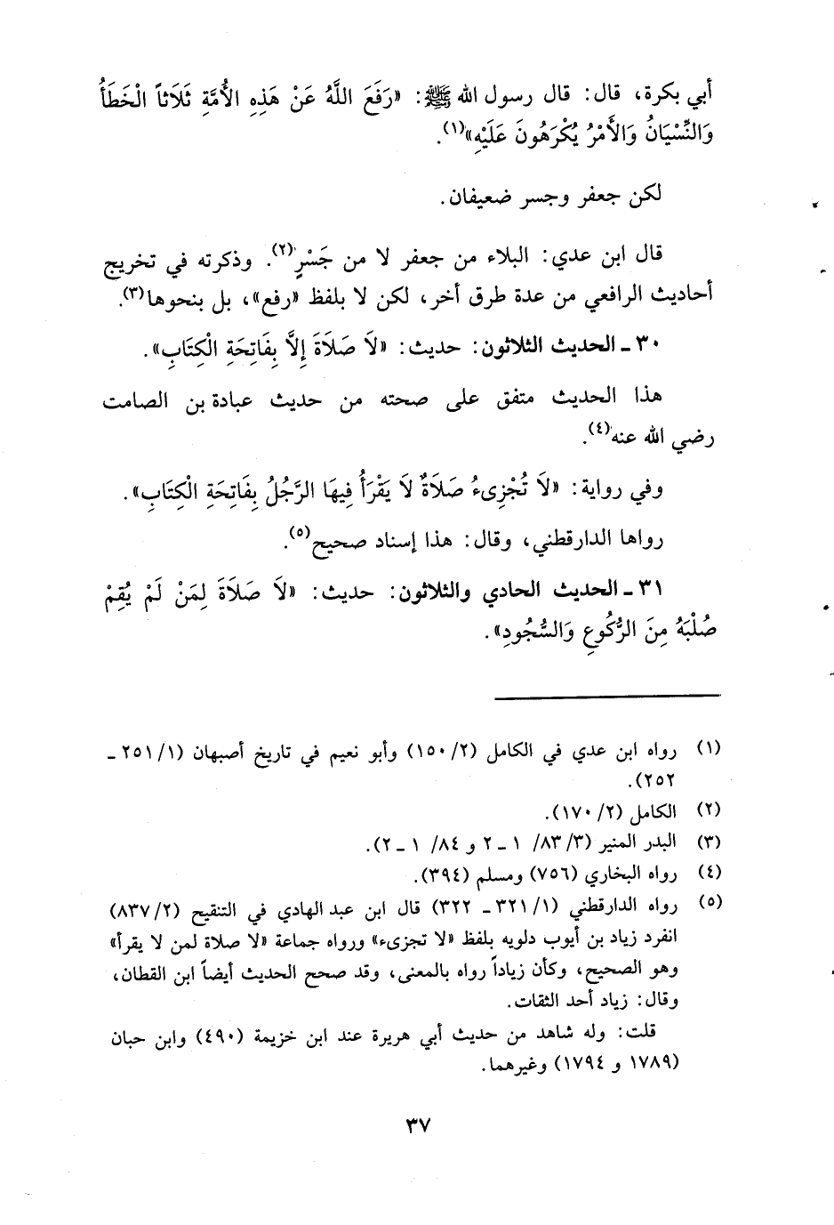 30 - الحَدِيث الثَّلَاثُونَ: حَدِيث: «لَا صَلَاة إِلَّا بِفَاتِحَة الْكتاب» .