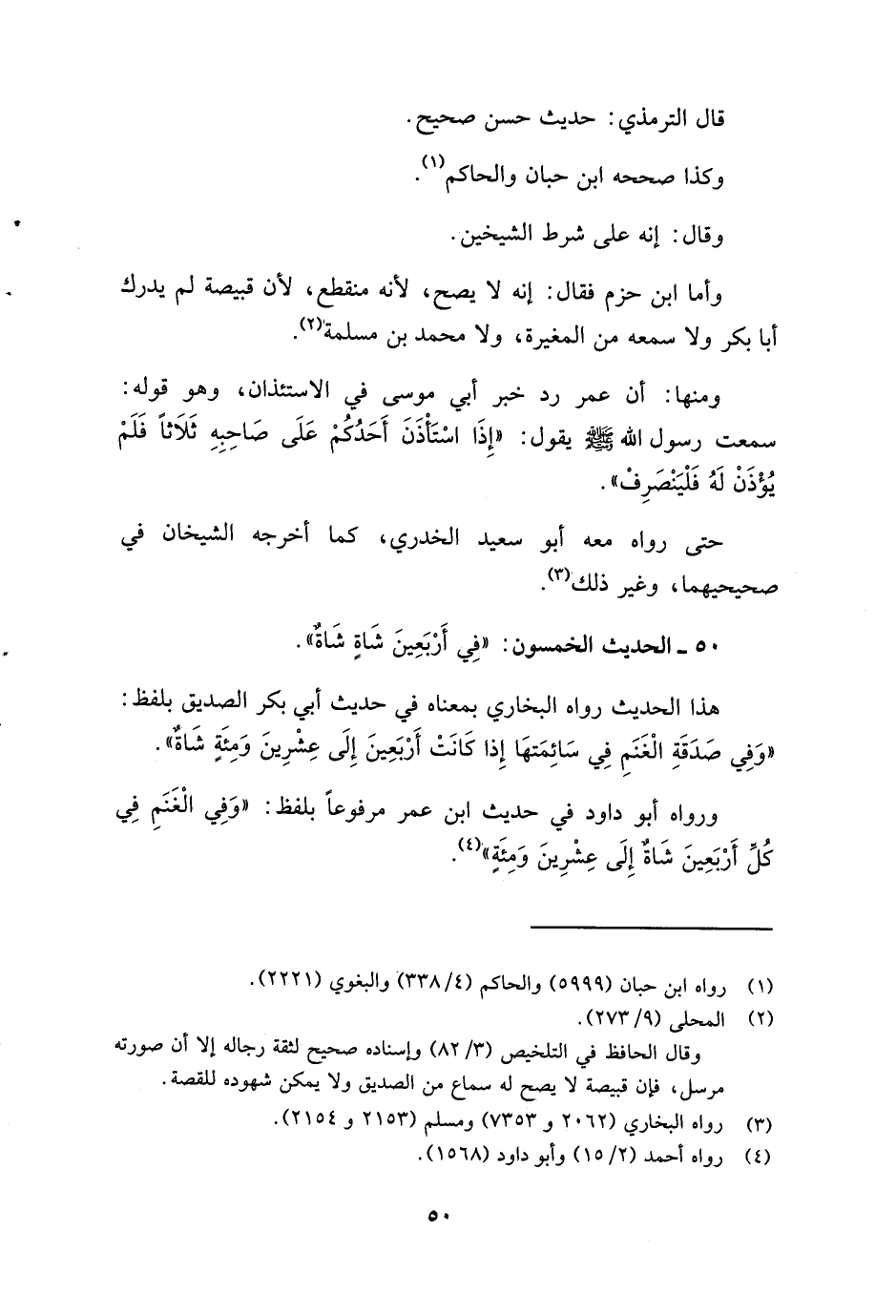 50 - الحَدِيث الْخَمْسُونَ: «فِي أَرْبَعِينَ شَاة شَاة» .