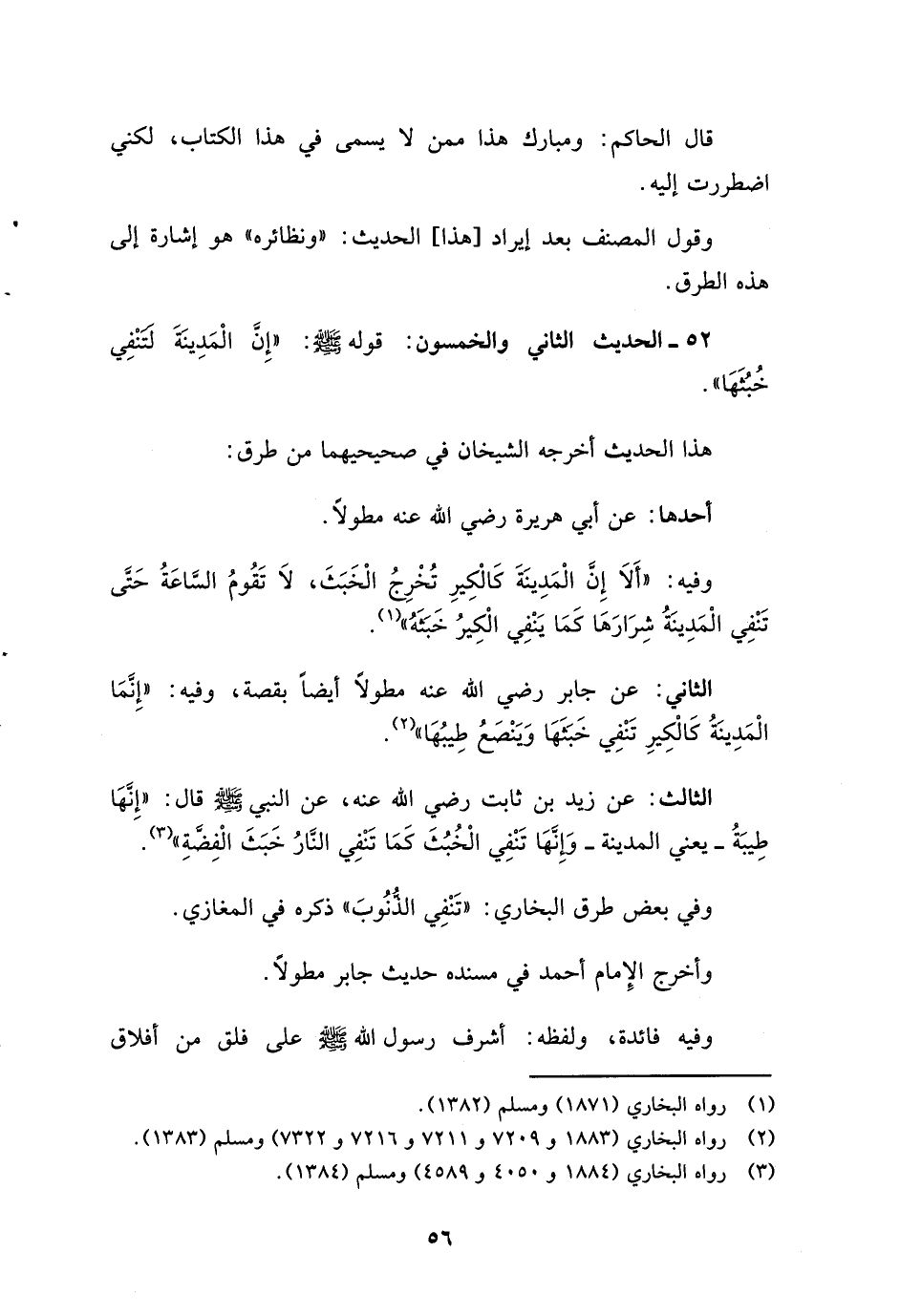 52 - الحَدِيث الثَّانِي وَالْخَمْسُونَ: قَوْله صَلَّى اللَّهُ عَلَيْهِ وَسَلَّم َ: «إِن الْمَدِينَة لتنفي خبثها» .