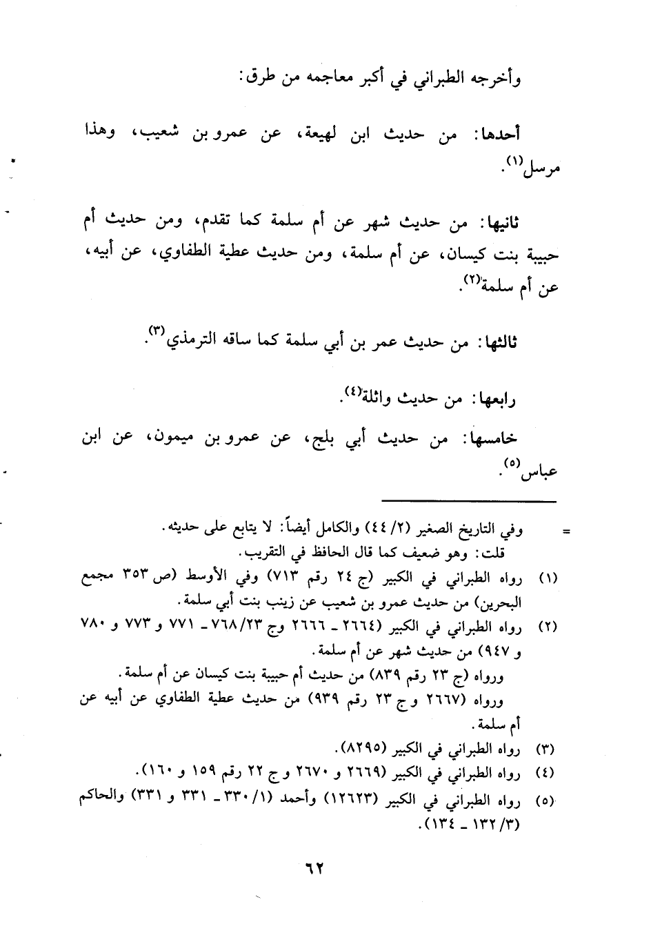 أَحدهَا: من حَدِيث ابْن لَهِيعَة، عَن عَمْرو بن شُعَيْب، وَهَذَا مُرْسل. ثَانِيهَا: من حَدِيث شهر عَن أم سَلمَة كَمَا تقدم، وَمن حَدِيث أم حَبِيبَة بنت كيسَان، عَن أم سَلمَة، وَمن حَدِيث عَطِيَّة الطفَاوِي، عَن أَبِيه، عَن أم سَلمَة.