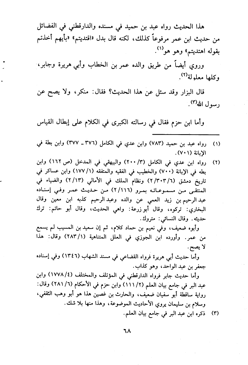 هَذَا الحَدِيث رَوَاهُ عبد بن حميد فِي مُسْنده وَالدَّارَقُطْنِيّ فِي الْفَضَائِل من حَدِيث ابْن عمر مَرْفُوعا كَذَلِك، لكنه قَالَ بدل «اقْتَدَيْتُمْ» «بِأَيِّهِمْ أَخَذْتُم بقوله اهْتَدَيْتُمْ» وَهُوَ هُوَ.