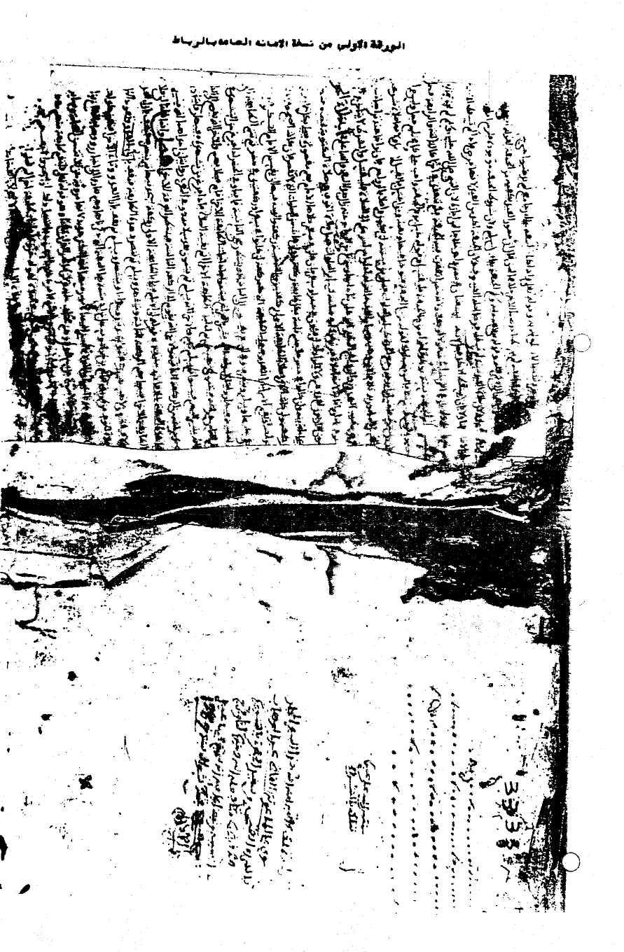 الورقة الأولى من نسخة الأمانة العامة بالرباط