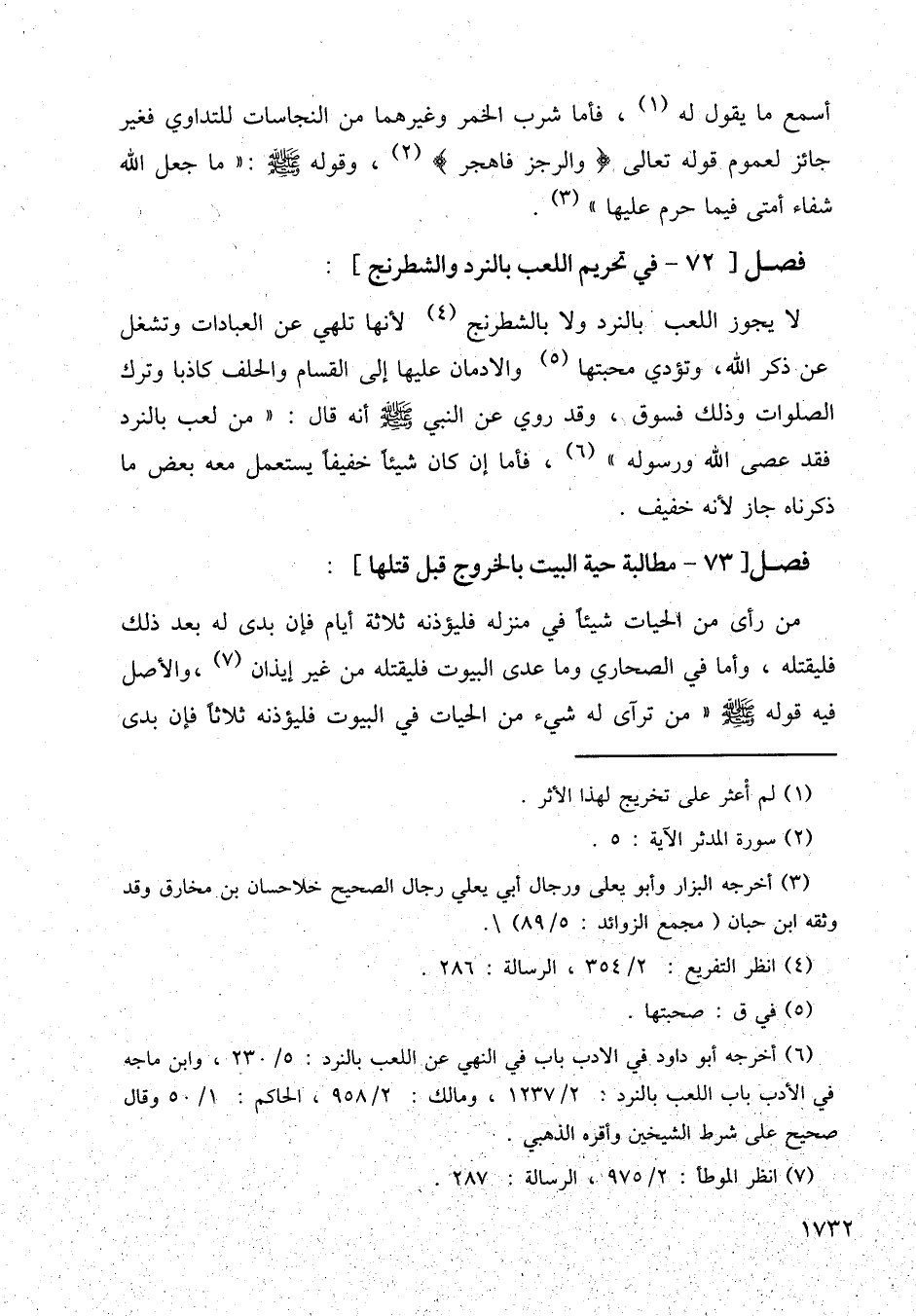فصل [72 - في تحريم اللعب بالنرد والشطرنج]: