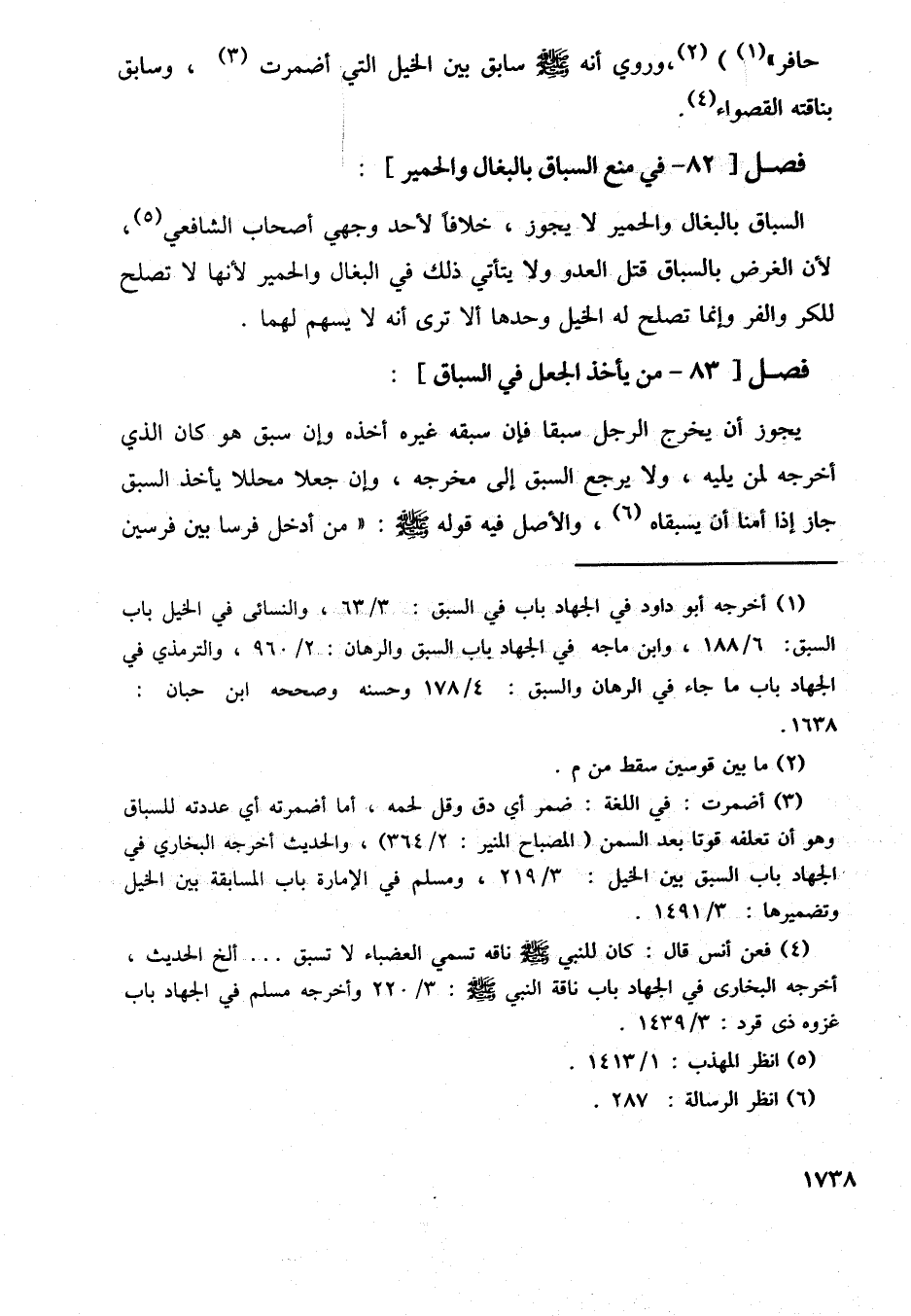 (¬4) فعن أنس قال: كان للنبي - صلى الله عليه وسلم - ناقه تسمي العضباء لا تسبق ... ألخ الحديث، أخرجه البخاري في الجهاد باب ناقة النبي - صلى الله عليه وسلم -: 3/ 220 وأخرجه مسلم في الجهاد باب غزوه ذي قرد: 3/ 1439.