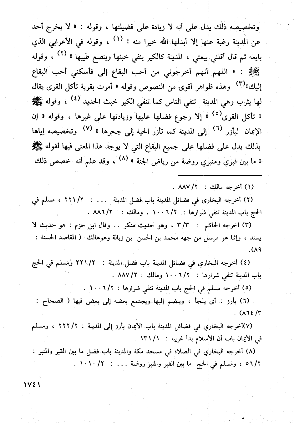 (¬4) أخرجه البخاري في فضائل المدينة باب فضل المدينة: 2/ 221 ومسلم في الحج باب المدينة تنفي شرارها: 2/ 1006 ومالك: 2/ 887.