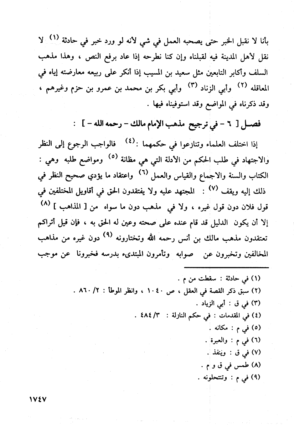 فصل [6 - في ترجيح مذهب الإمام مالك - رحمه الله -]: