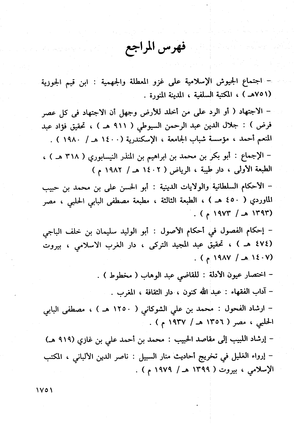 - الاجتهاد (أو الرد على من أخلد للأرض وجهل أن الاجتهاد في كل عصر فرض): جلال الدين عبد الرحمن السيوطي (911 هـ)، تحقيق فؤاد عبد المنعم أحمد، مؤسسة شباب الجامعة، الإسكندرية (1400 هـ/ 1980).