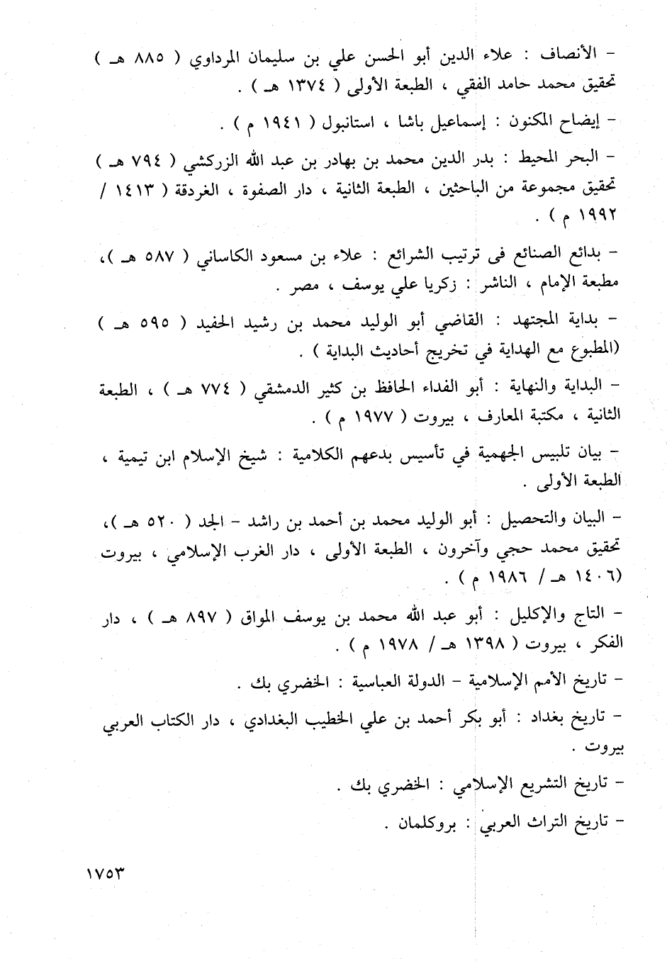 - الأنصاف: علاء الدين أبو الحسن علي بن سليمان المرداوي (885 هـ) تحقيق محمَّد حامد الفقي، الطبعة الأولى (1374 هـ).