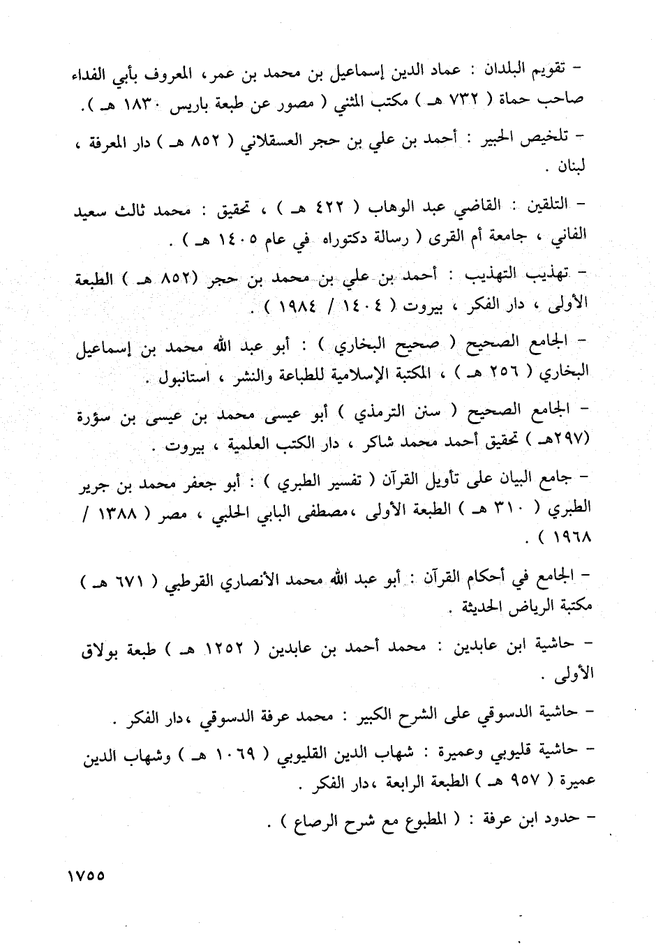- تهذيب التهذيب: أحمد بن علي بن محمَّد بن حجر (852 هـ) الطبعة الأولى، دار الفكر، بيروت (1404/ 1984).