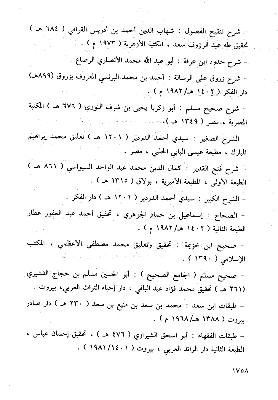 - شرح تنقيح الفصول: شهاب الدين أحمد بن إدريس القرافي (684 هـ) تحقيق طه عبد الرؤوف سعد، المكتبة الأزهرية (1973 م).