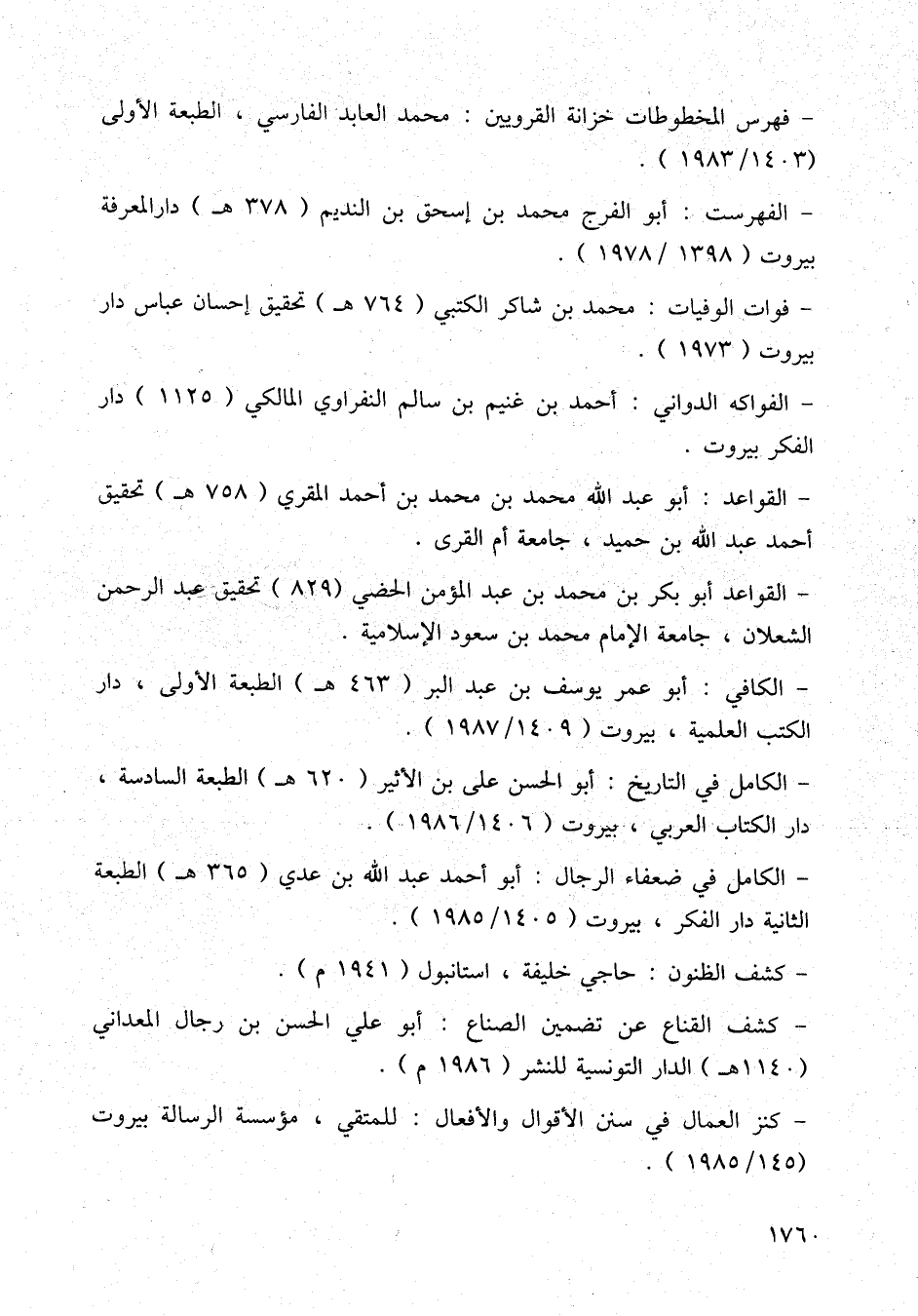 - فهرس المخطوطات خزانة القرويين: محمَّد العابد الفارسي، الطبعة الأولى (1403/ 1983).