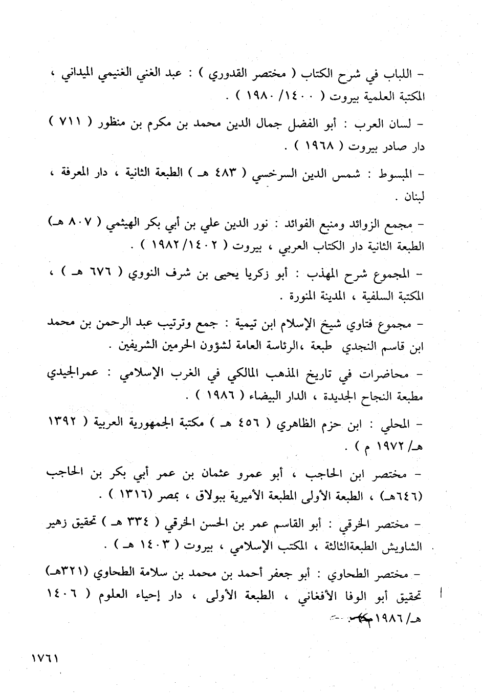 - مختصر الطحاوي: أبو جعفر أحمد بن محمَّد بن سلامة الطحاوي (321 هـ) تحقيق أبو الوفا الأفغاني، الطبعة الأولى، دار إحياء العلوم (1406 هـ/ 1986 م).