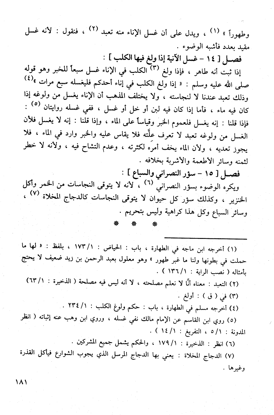 (¬5) روي ابن القاسم عن الإمام مالك نفي غسله، وروي ابن وهب عنه إثباته (انظر المدونة: 1/ 5، التفريغ: 1/ 14).