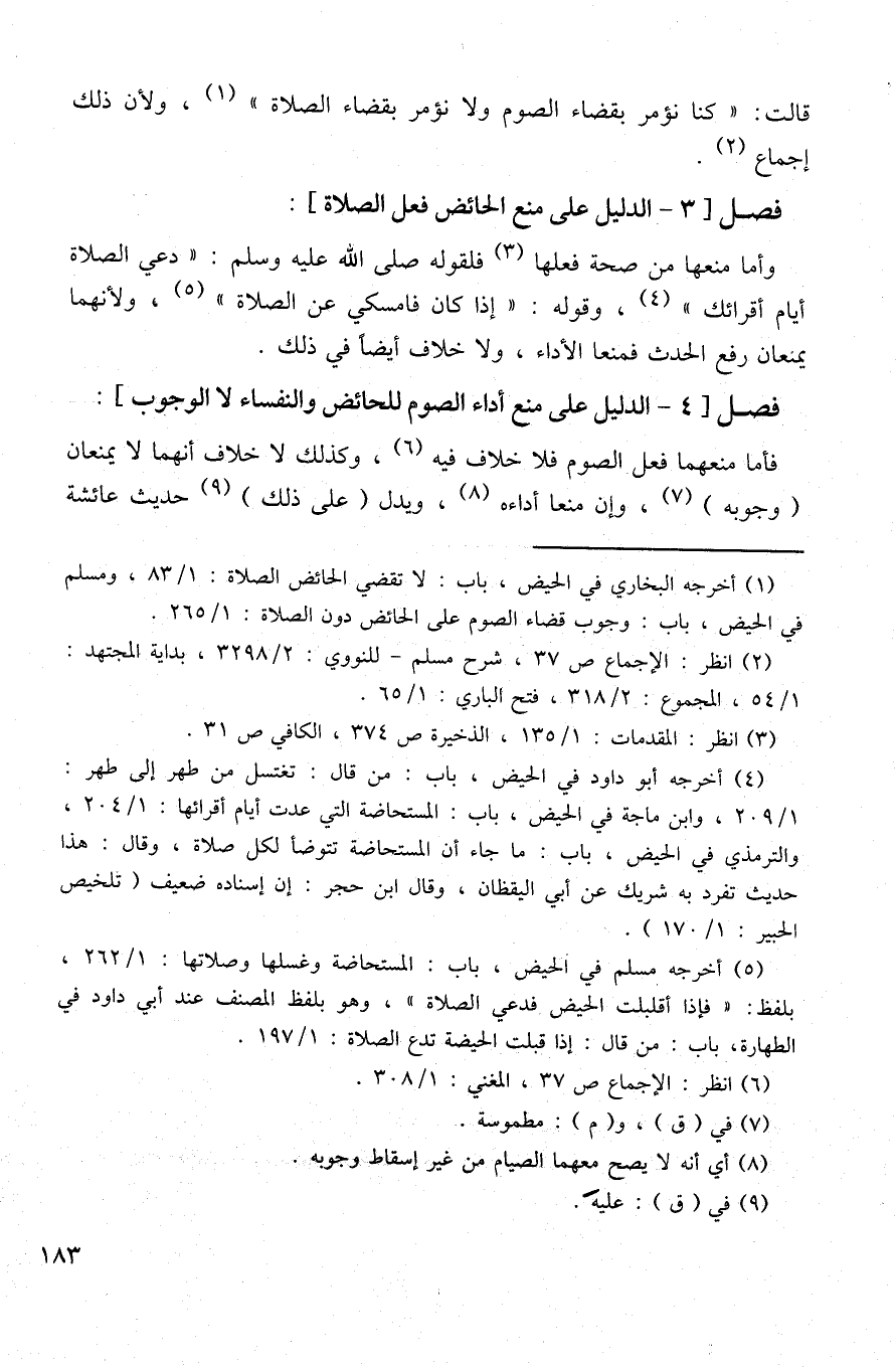 فصل [3 - الدليل على منع الحائض فعل الصلاة]: