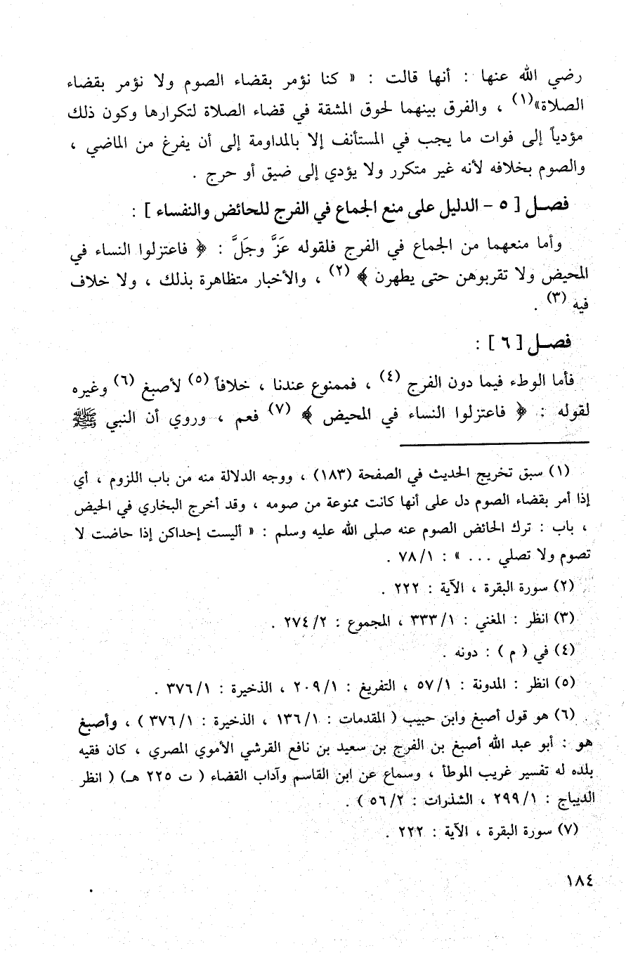 فصل [5 - الدليل على منع الجماع في الفرج للحائض والنفساء]: