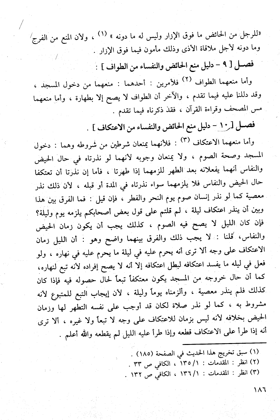 فصل [9 - دليل منع الحائض والنفساء من الطواف]: