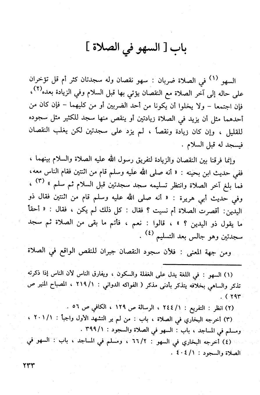 (¬4) أخرجه البخاري في السهو: 2/ 66، ومسلم في المساجد، باب: السهو في الصلاة والسجود: 1/ 404.